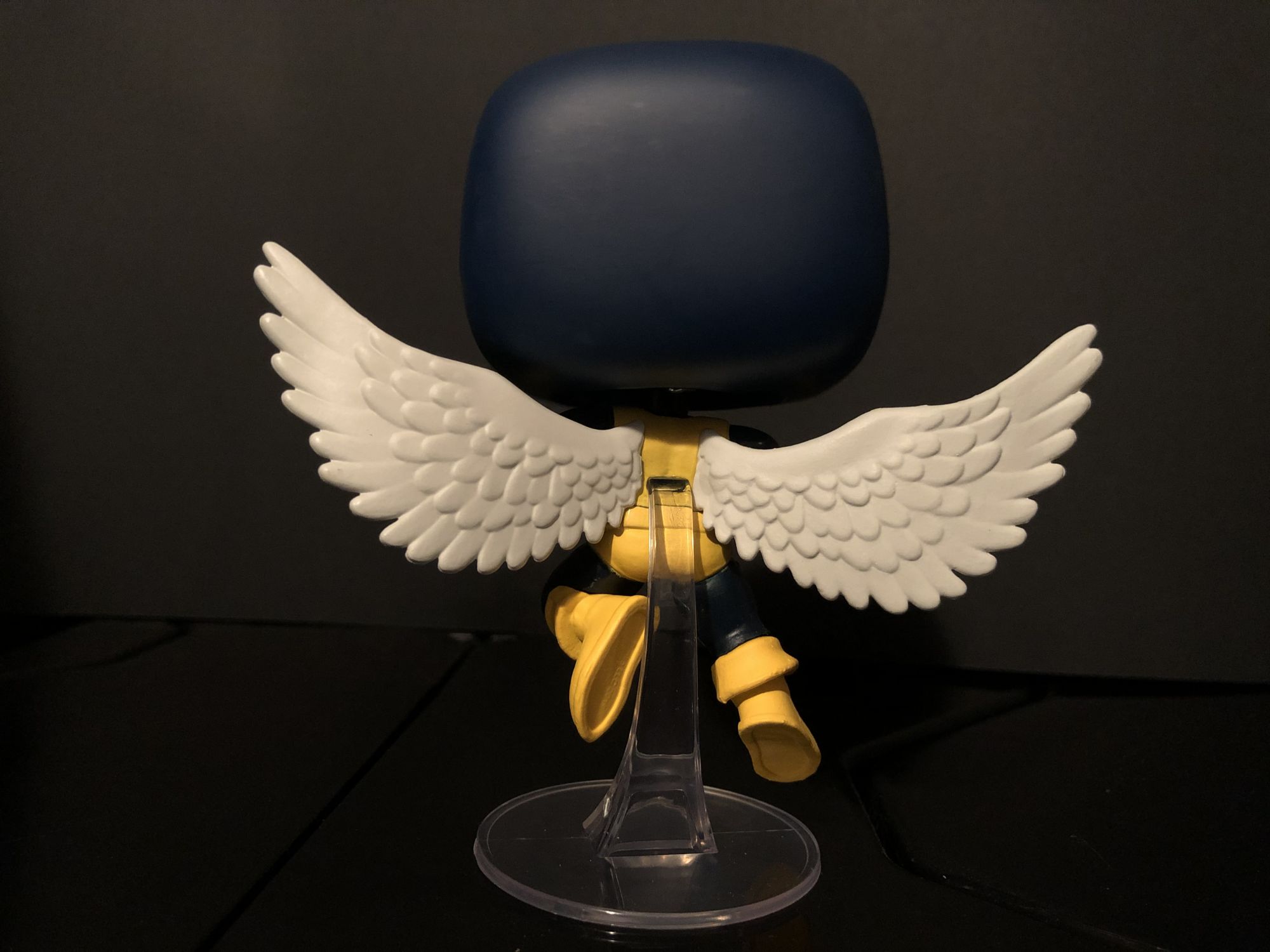 Lastly, we have the X-Men of flight and beauty, Angel. He has had a release before, and the X-Men Marvel Collector Corp Subscription box. I love this figure and it really stands out compared to the rest. With an included base, Angel flies high with his wings spread. It's like the other X-Men he has a yellow and blue outfit but this time his white rings really stand out.