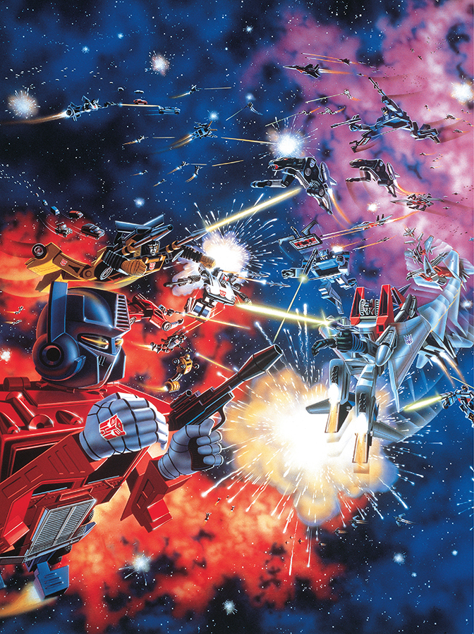 Transformers: A Visual History reflects this evolution by organizing its narrative, and artistic offerings, into five categories: Packaging, animation, comics, video games, and film. Nothing is left out, from comparisons of box-art in America and Japan to full page reproductions of rarities such as Star Convoy (Optimus Prime's space-faring counterpart from the later, Japanese series).