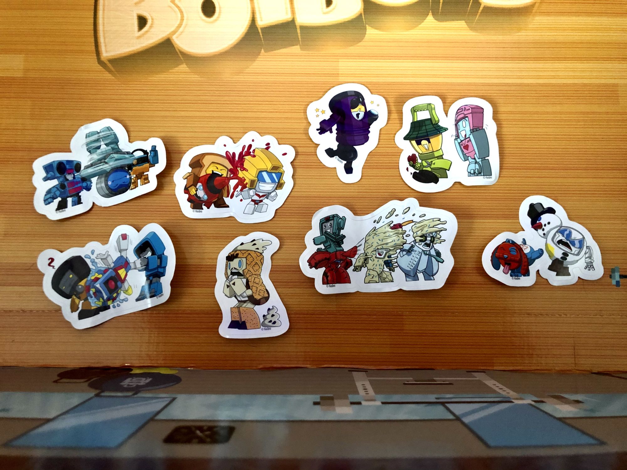 There are 10 tribes in total in Transformers BotBots Series 5. Hasbro sent us 5 of these tribes with the 5-Packs featuring the tribes, Cardio Cliques, Party Favors, and Los Deliciosos. The 8-Packs had the tribes, Frequent Flyers and Hobotichi Heats (which is my favorite tribe of this series). The Gumball and Glow Machine did not have a series list so I am unclear if they are special to those games themselves or if you can get them through other means. We are first going to look at the two special Transformers BotBots Goldrush Games boxes that include a Winners Circle tribe BotBot in each box. On top of the gold figure, you will also get 5 more bots and 5 dynamic stickers but you won't know what is what as they all come in sealed plastic balls. The Claw Machine game was pretty fun to play, as there is a paper tab on the side that when you pull the tab it makes the mystery balls fall. The Gumball Machine was a lot more intricate than the Claw game as it let you swipe a switch left and right pulling one ball from the collection hidden above. In the end, we ended up with two Winners Circles Goldrush Games Botbots, 10 normal bots, and 10 stickers. The Claw Machine had a golden football bot which was pretty awesome to see in person with some other great figure like a 3D glasses owl and a transforming couch! The Gumball machine seemed to be very dessert heavy with the bots and we got a golden donut out of this one. The stickers were a nice touch and being a fan of the series I like to see the animated side of these characters. The idea of the Transformers BotBots is such a unique thing that you almost forget they are real objects and this gives them that extra flavor you would want. Hell, after seeing these stickers, I would love to see a cartoon about these bots and all of their crazy adventures they get into at the mall.