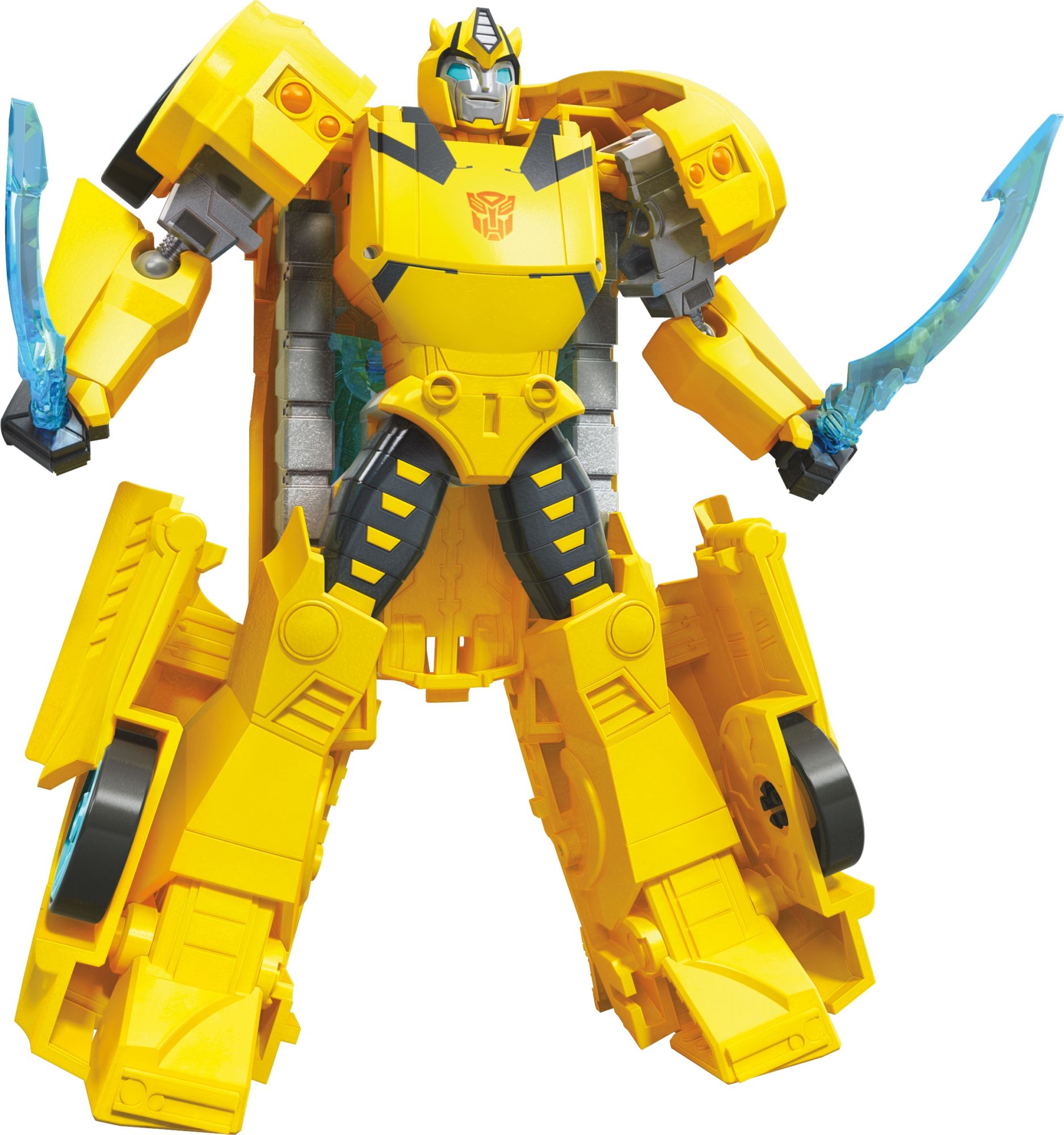 Inspired by the CYBERVERSE animated series, this ULTRA CLASS BUMBLEBEE figure stands at 6.5 inches tall in robot mode and converts to car mode in eight steps. Combine BUMBLEBEE with cool, colored Energon Armor automatically to convert him into his powered-up mode, and pull out his Cybertronian Sabers weapons in the last conversion step to activate his Energon Armor-Up feature.