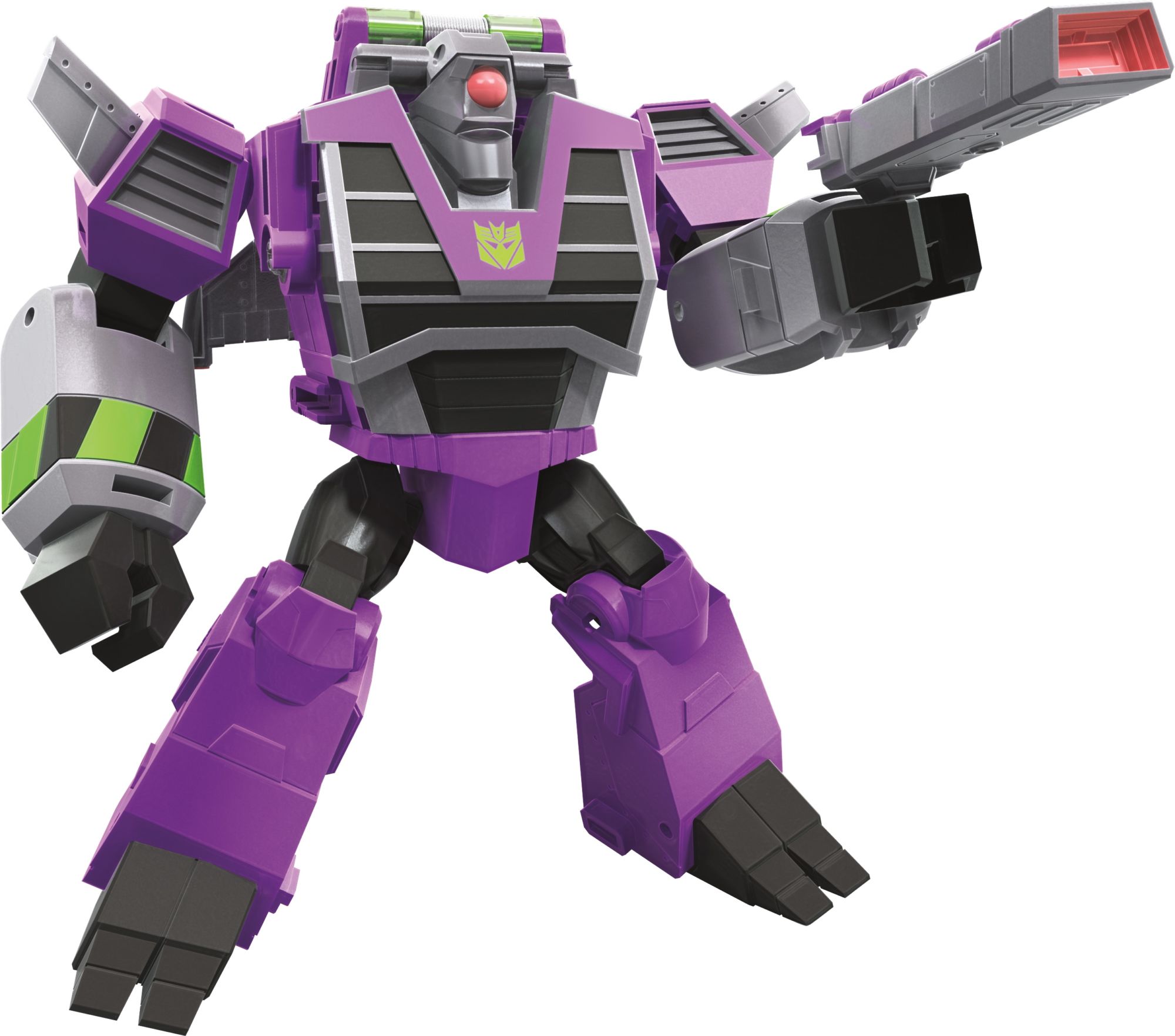 Inspired by the CYBERVERSE animated series, this ULTIMATE CLASS SHOCKWAVE figure stands at 9 inches tall in robot mode and converts to vehicle mode in ten steps including his weapon-triggered conversion. Combine SHOCKWAVE with cool, colored Energon Armor automatically to convert him into his powered-up mode, and pull out his weapon accessory in the last conversion step to activate SHOCKWAVE'S Wave Cannon Action Attack feature!