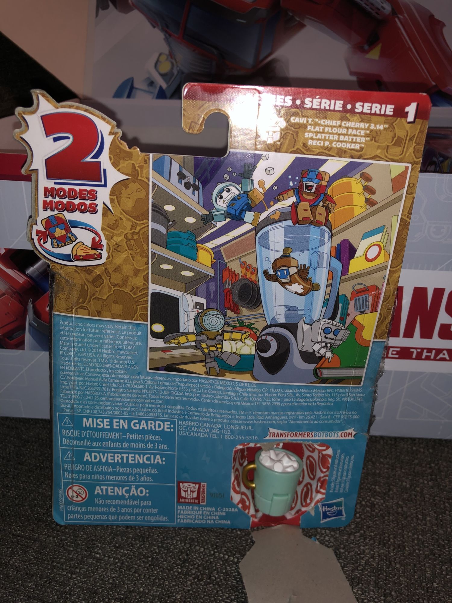 The five BotBots we got were Batter Splatter, Flat Flour Face, McMuzzsaw and Bum Sprout. The mixer and the rolling pin are the color changes of the group. You could notice the color-changing aspects with "spill spots" on their bodies. With a quick rub on the spot, you will be greeted with the color change. Both of the colors are white and it quite a bit of rubbing too get it to change. I think it would be interesting if we could see fledged color-changing BotBots in the future.