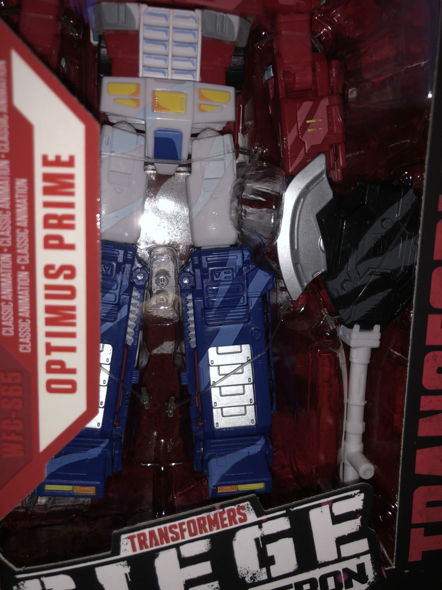 Finally in the Transformers box that Hasbro sent us for free includes Transformers 35th Anniversary figures exclusive to Walmart. We got Transformers Generations War for Cybertron Classic Animation Exclusive figures. These Transformers characters look like they were taken off-screen and put in a box but Hasbro just added these cartoon-like cels shaded deco that gives the figures an animated look that is from their original G1 series. First, we are getting Autobot's leader Optimus Prime. The packaging box is remarkably detailed with art style work on the side. Being a MOC "Mint on Card" collector I couldn't take myself to open this figure as he looks perfectly displayed inside this artistic box.