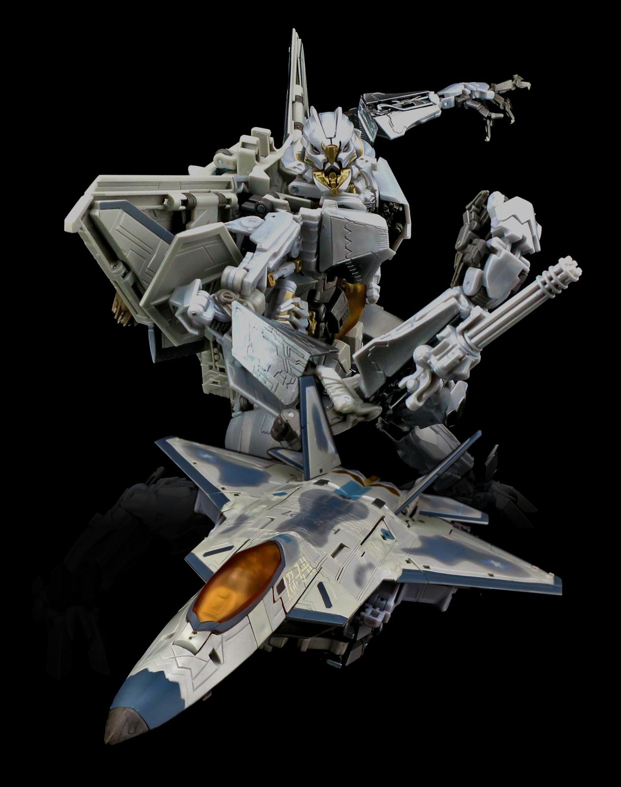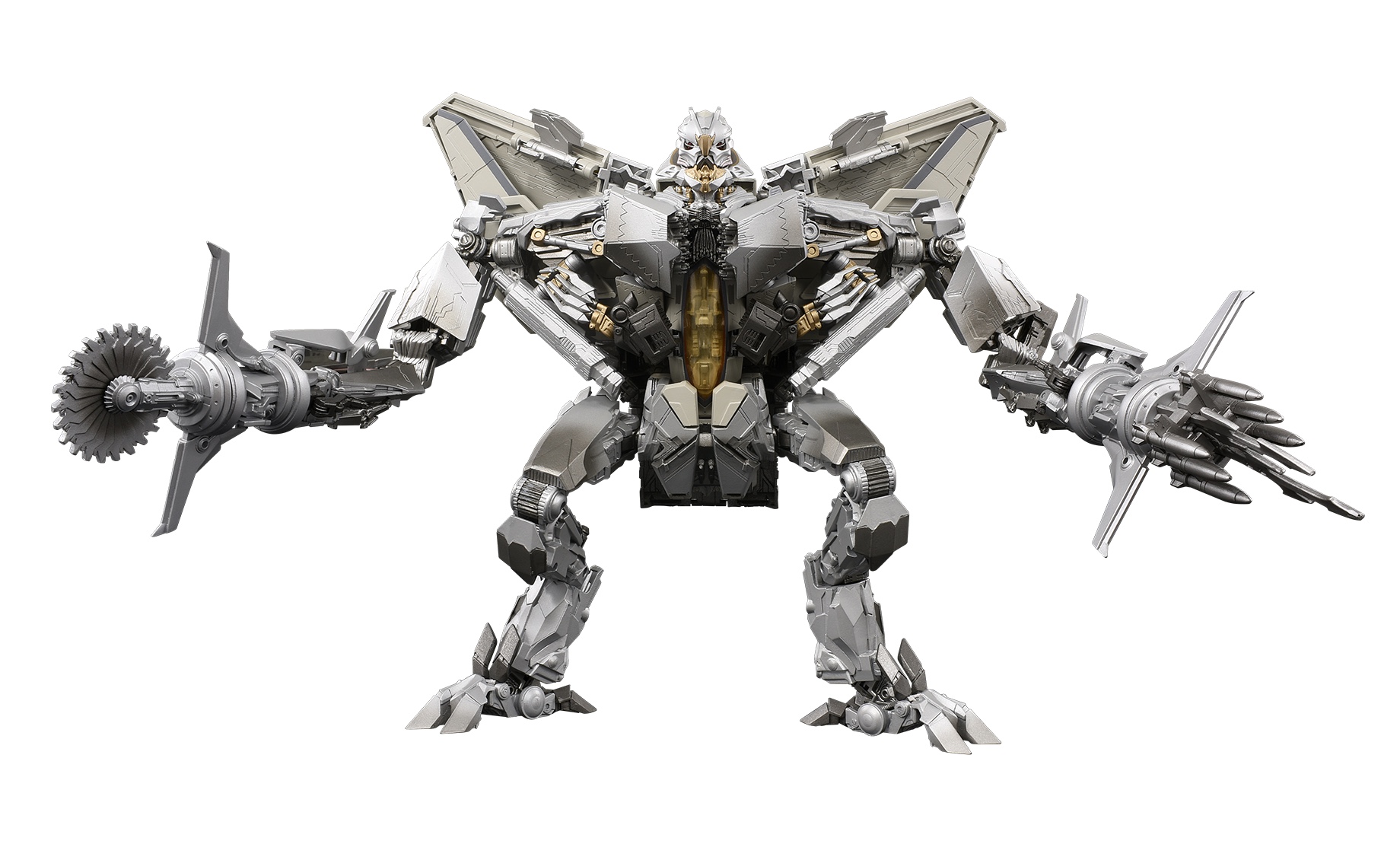 "Transformers: Movie Masterpiece Series MPM-10 Starscream (Ages 8 and Up/Approx. Retail Price $149.99/ Available 9/1/2020). Recreate your favorite Starscream scene from the first Transformers movie with the new Movie Masterpiece Starscream! The MPM-10 Starscream figure is an authentic Transformers collectible figure inspired by the CAD files from the first Transformers film and includes die cast parts and 150 deco ops with more than 50 points of articulation. The MPM-10 Starscream figure stands at 11 inches in robot mode and converts into the movie-inspired officially licensed Lockheed Martin F-22 Raptor Jet in 63 steps. The figure features highly articulated hands, flip up thrusters, a moveable mouth, missile, and buzz saw arm attachments, and a Gatling blaster accessory. Modeled after the Transformers live action movies, Movie Masterpiece authentic figures feature film-inspired details and accessories, ideal for displaying on collectors' shelves. Available exclusively at Target.com and in-store 9/1/2020."