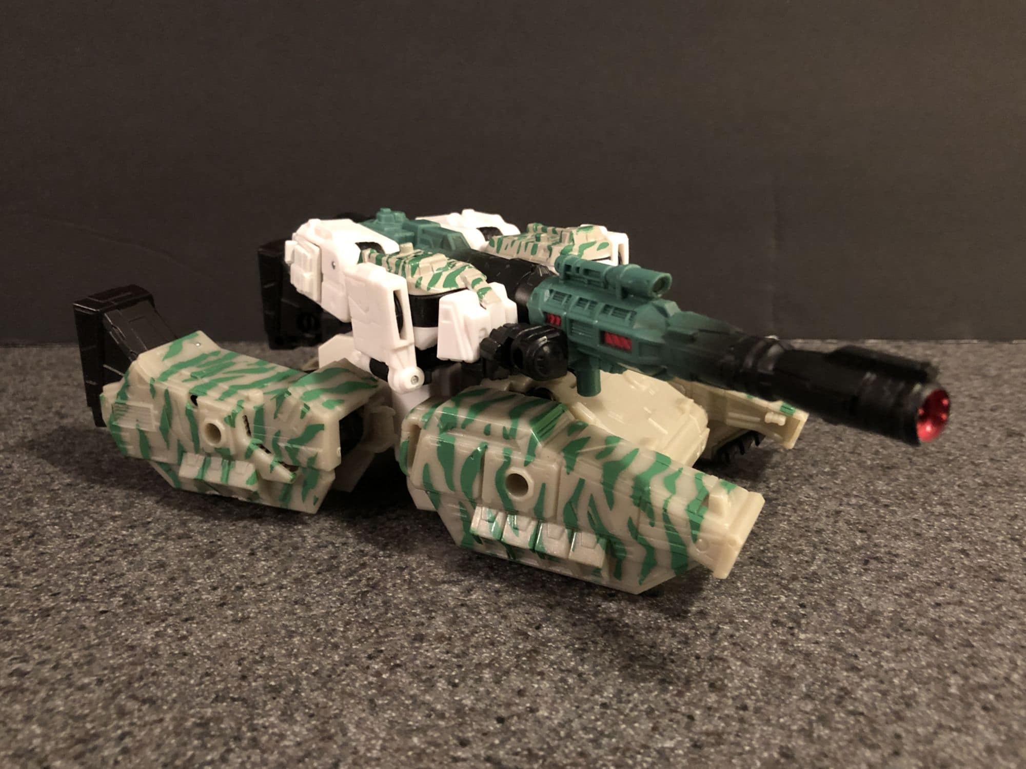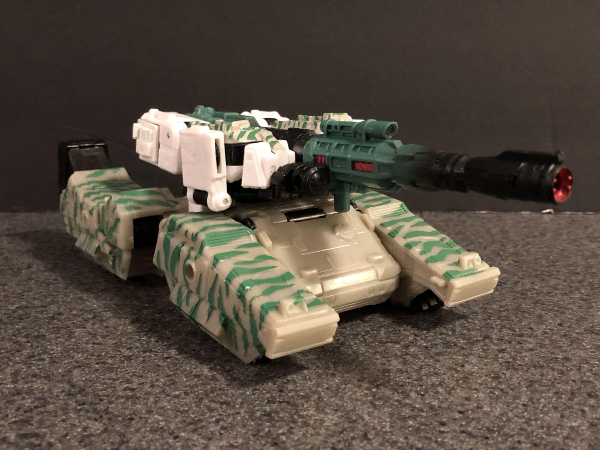 He is also really simple to transform to tank mode. The turret on the tank turns a full 360 degrees, and the G@ symbol and designation on his shoulder/front of the tank is a nice touch. I am more a robot mode type guy, but I can appreciate how easy it is to switch this guy back and forth.