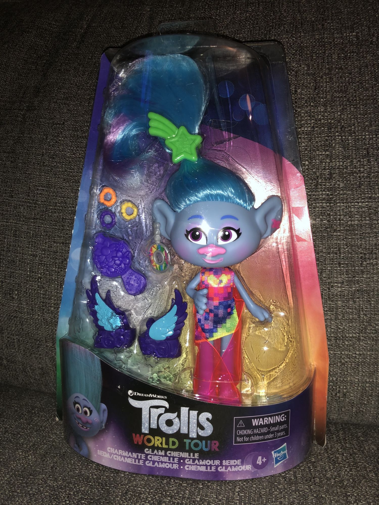 More Troll Fashion dolls are here to make their voices be heard with some amazing figures. Styling Barb is up first and she is a part of the Trolls World Tour fashion trolls line. I'm an in the box collector so I didn't want to open her up but she was really rocking out in the box! She does not come with any accessories but her outfit is all you need to have her stand out from the rest. She is priced at $9.99 and you can find one for yourself here. Glam Chenille and Poppy are doubling up and are up next as they are from the same series from the $14.99 Trolls Fashion line. They are packed with some adorable accessories and can easily make any fan enhance their rockstar dream outfit with these figures and you can find yours here. Poppy is my favorite of the three and her added cloud elevator shoes are adorable and can literally make her stand above the rest.