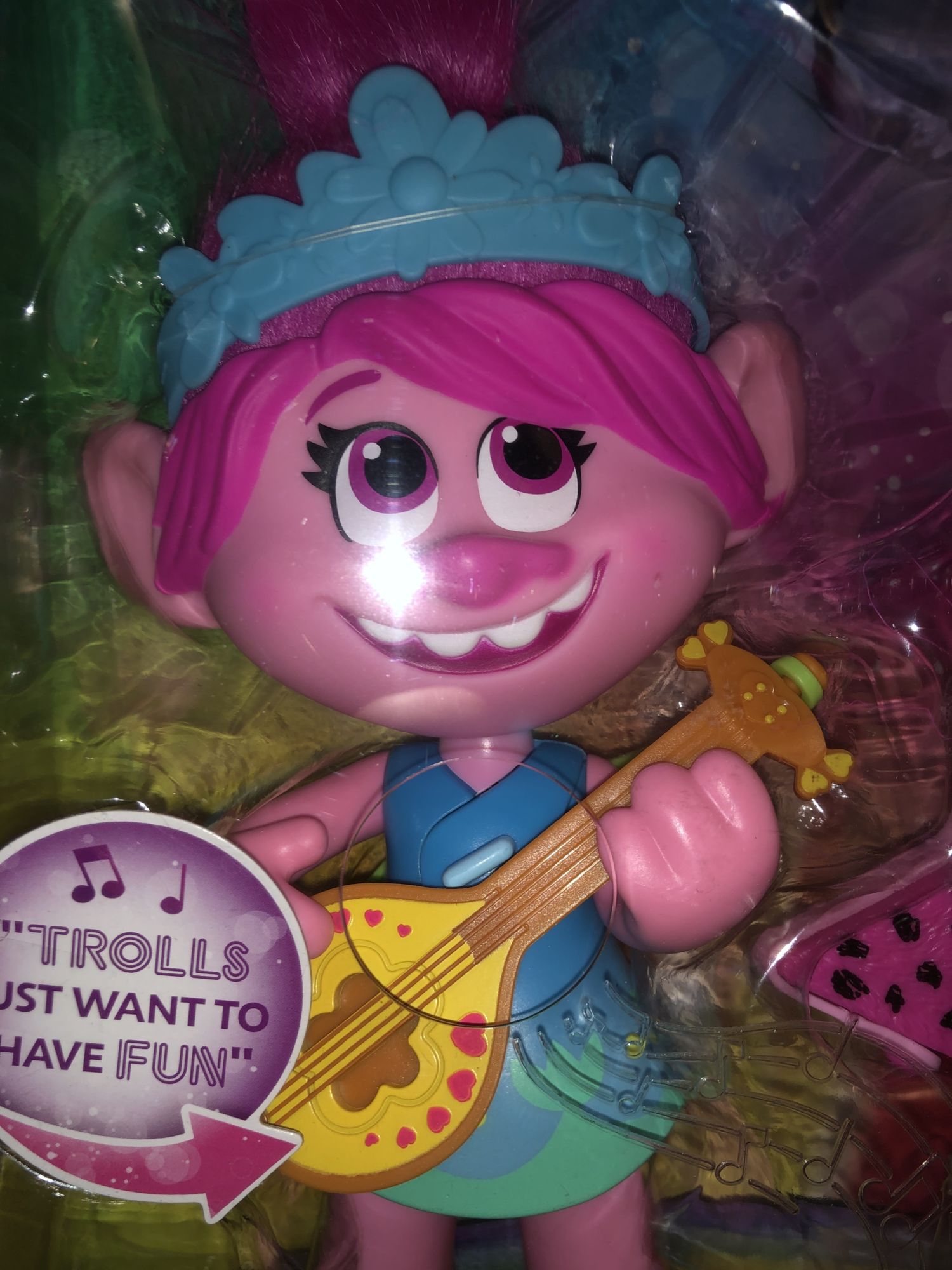 The biggest figure that can get fans excited for Trolls World Tour is the Pop-to-Rock Poppy singing doll. Now, this figure is something special and the ability to change her between two outfits is pretty cool. She does sing two songs, the song choice is a Cindy Lauper cover of Girls Just Wanna Have Fun but they have switched it to Trolls Just Want To Have Fun. When you equip Poppy with her heavy metal guitar she gives a harder rocking version of the song compared to her acoustic version. This figure comes in at $29.99 and you can find your own located here and Trolls fan should easily snag one up for their own little rockers.