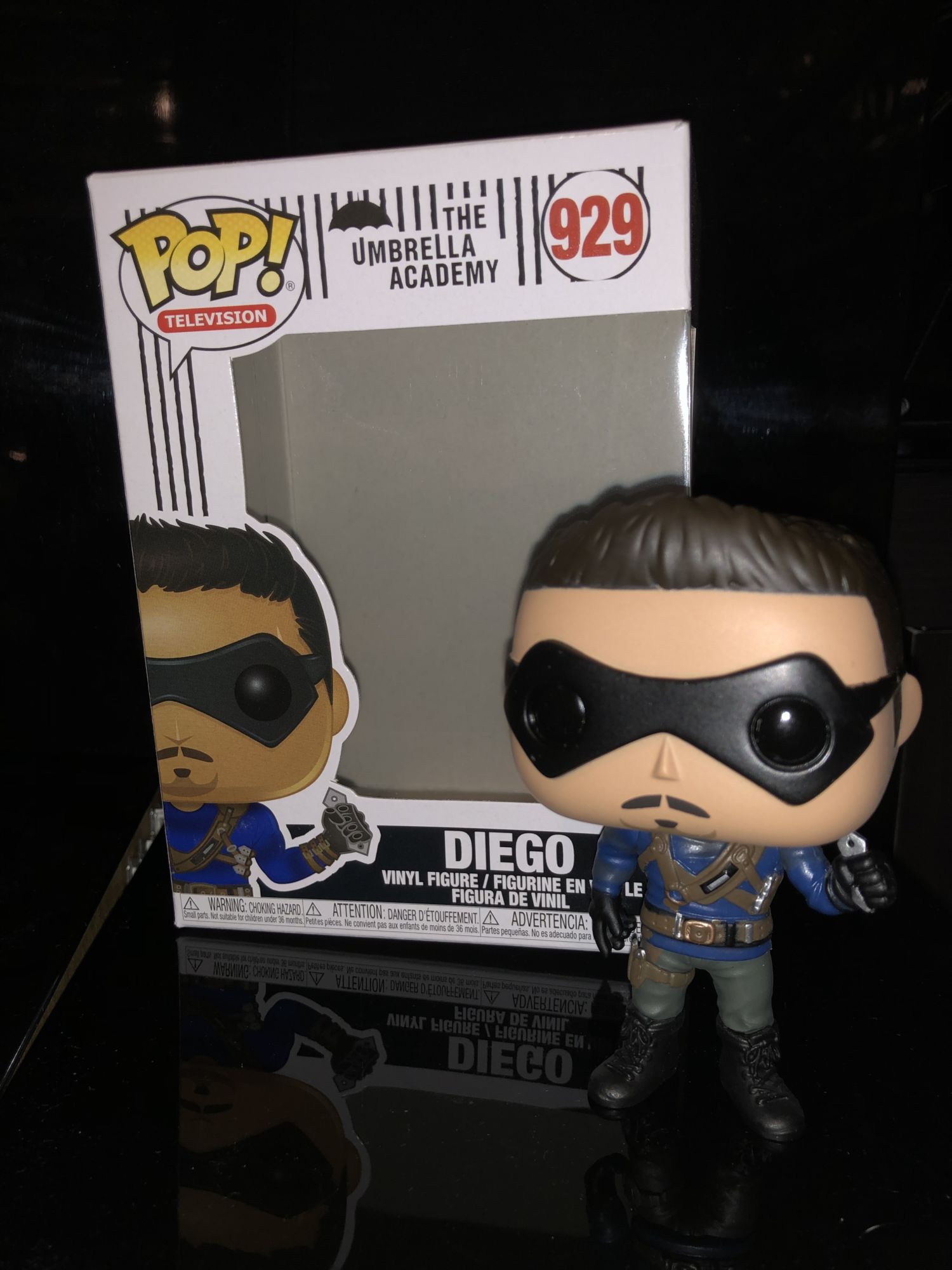 The characters pretty well designed showing the older aged and crimefighting Diego who is wearing his mask, body armor, and tactical boots. Funko did give him his throwing knife which is his weapon of choice as seen in The Umbrella Academy. I do like how the Funko team has added different shades for facial hair and that right there is definitely a new level for any Funko Pop figure.