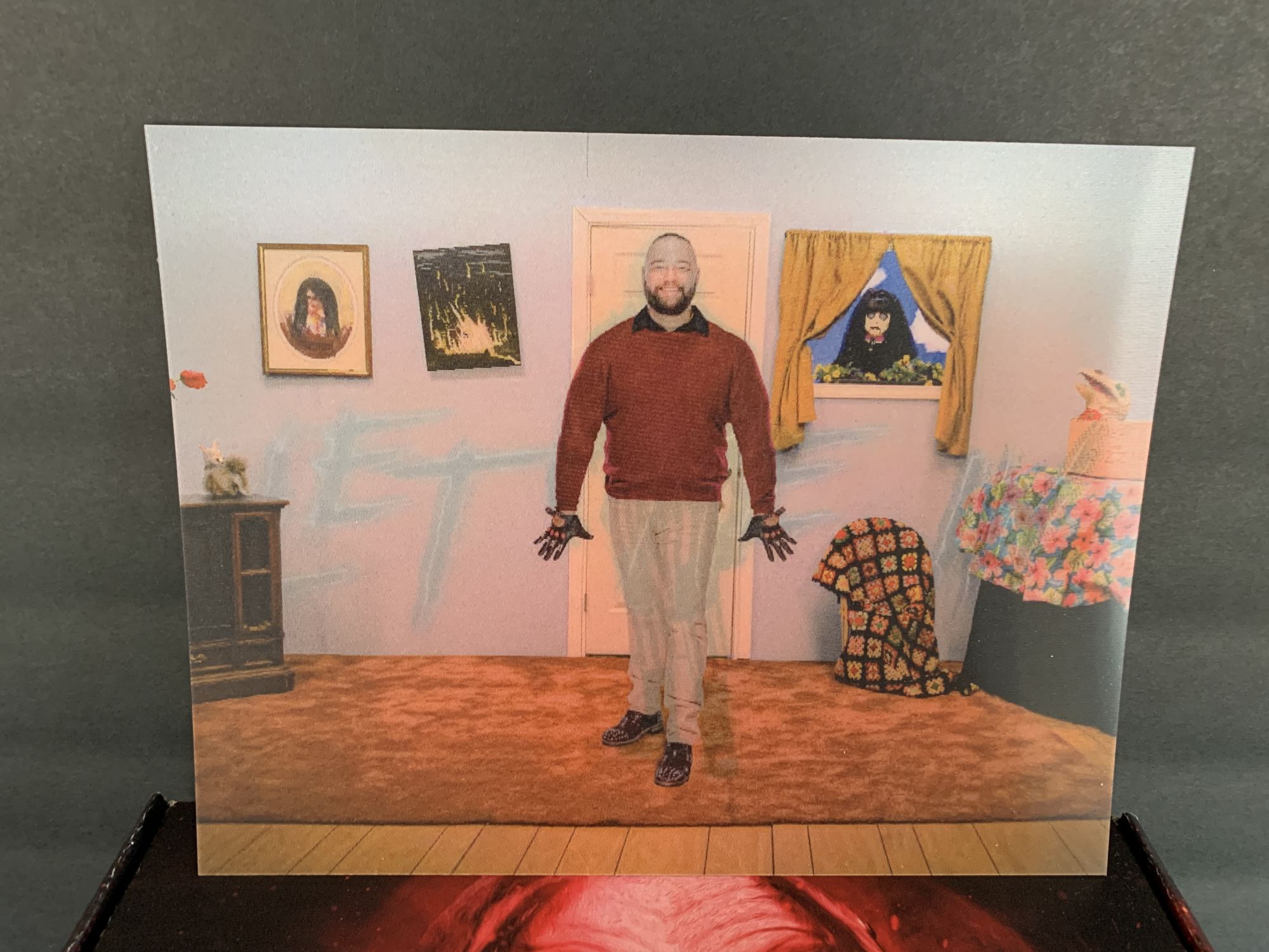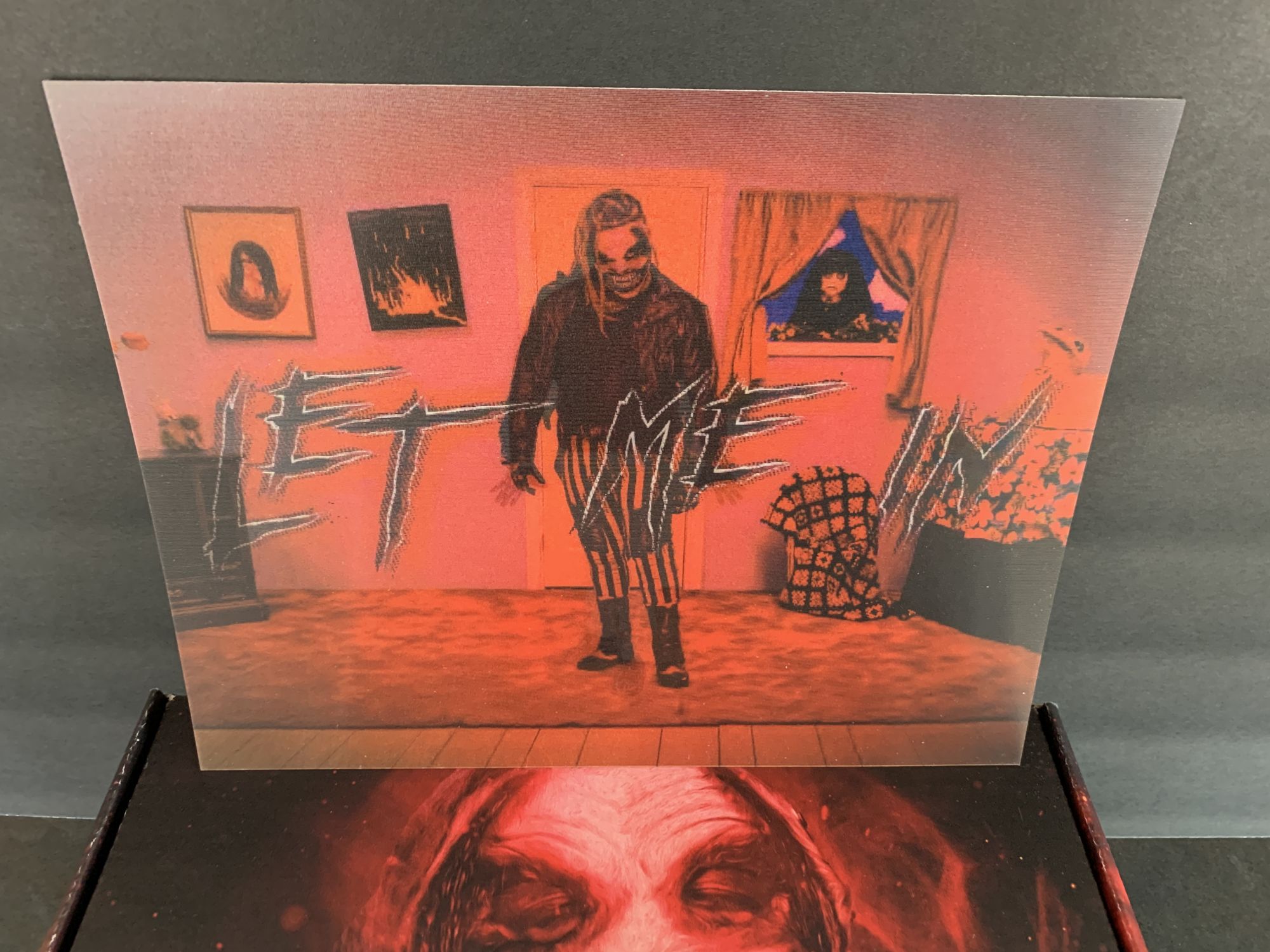 As far as the contents of the box, you get a cheap drawstring bag that others may care about; I do not use them. The shirt is ok, the design is interesting. There are better Fiend shirts available than this one, but it's ok. There is also a lenticular that changes from Bray to The Fiend when you tilt it. Again, not something I need, but as a throw-in, it's not bad.