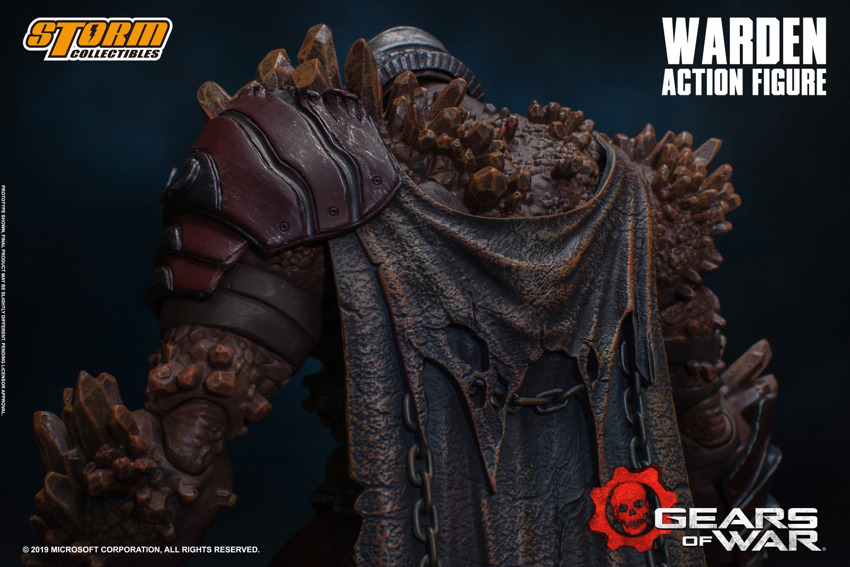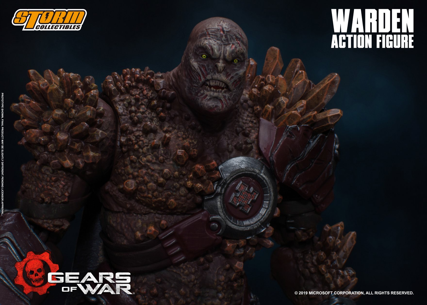 Wardens are deadly elite Scions from the world of Gears of War. After severed exposed to the Imulsion Countermeasure Weapon these Locust has evolved into something greater. Their evolution has blessed with their own natural armor through indestructible crystals. This makes them the ideal threat to take on foe who stands in their way and Storm Collectibles wants you to bring him home. This Gears of War figure enemy live back in February but was only released with a single image and this time Storm Collectibles has offered up some additional photos. The Warden is beautifully sculpted and will come with a nice assortment of accessories. He comes with multiple interchangeable hands, a masked and unmasked head sculpt, and two breaker maxes. The figure I'll also come with a damaged Gear Infantry Helmet that will enhance your Marcus Felix and Augustus Cole Gears of War figures.