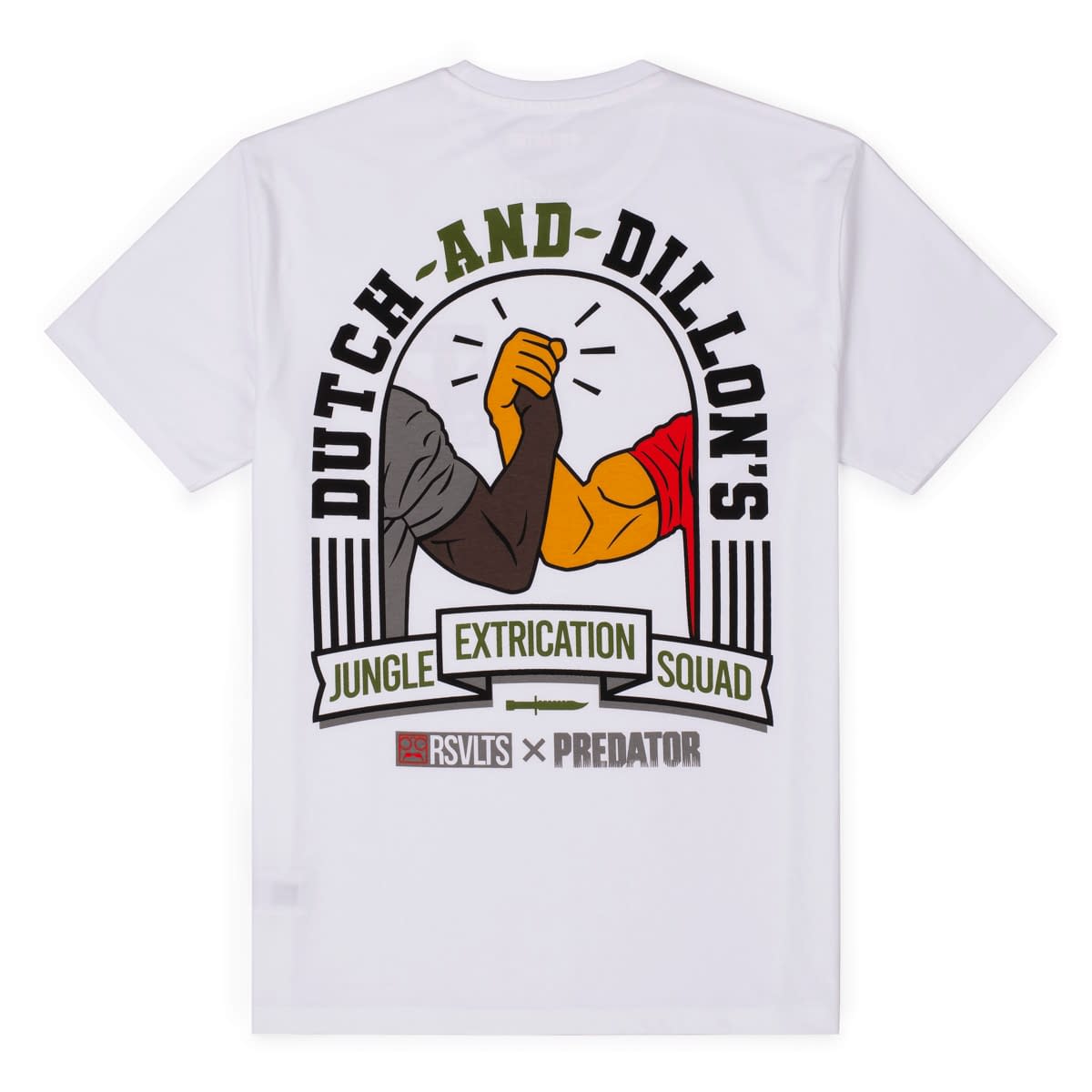 RSVLTS is on the hunt as they enter the Jungle, and debuting a new apparel collection that brings the world of Predator to your wardrobe. The Predator saga began in 1987 with the release of Predator, directed by John McTiernan and starring Arnold Schwarzenegger. Dutch is a special forces operative who finds himself and his team being hunted in the jungles of Val Verde by an unknown extraterrestrial warrior. The film beautifully blended military action with science fiction horror and created unforgettable lines that still echo in pop culture today. The franchise continues to thrive to this day, with its new 2025 release, Predator: Badlands, and now RSVLTS captures this franchise with their latest collection.