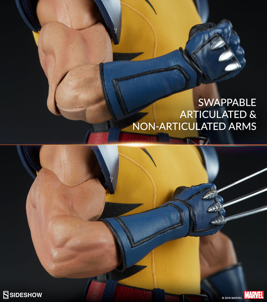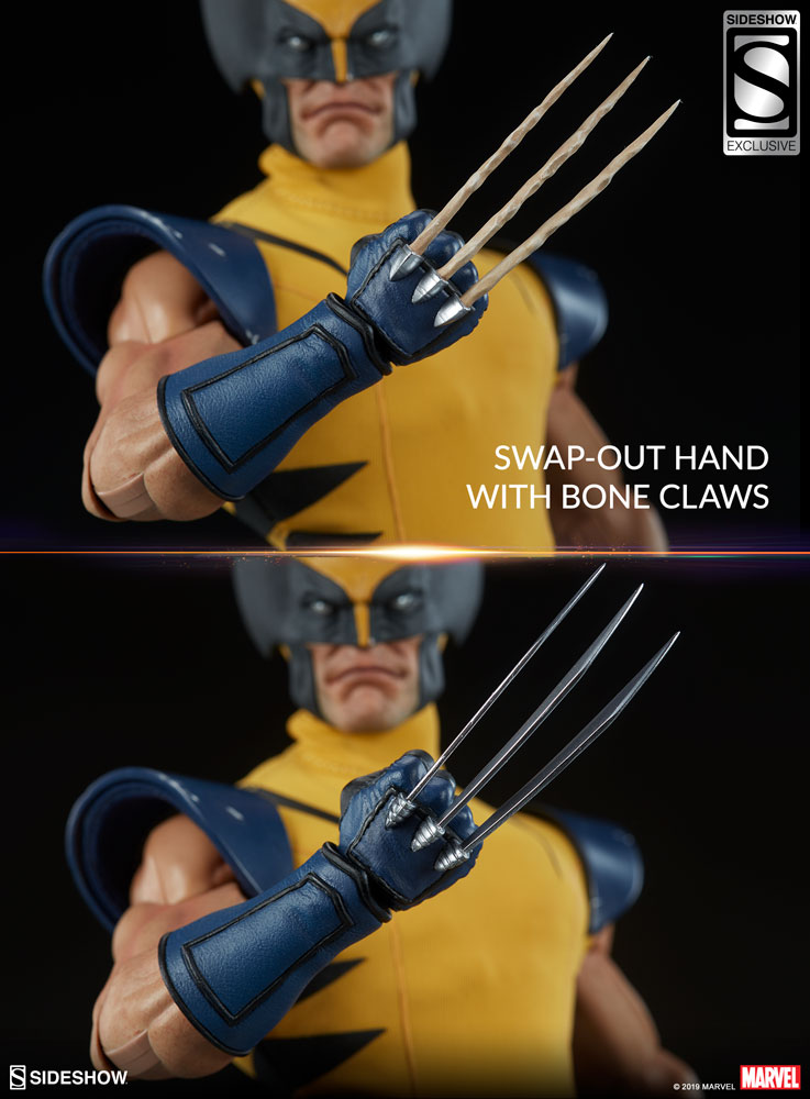 The Exclusive Edition of the Wolverine Sixth Scale Figure includes a pair of swap-out gloved fists featuring Logan's classic bone claws. Return to Wolverine's origins with this exclusive additional display option.