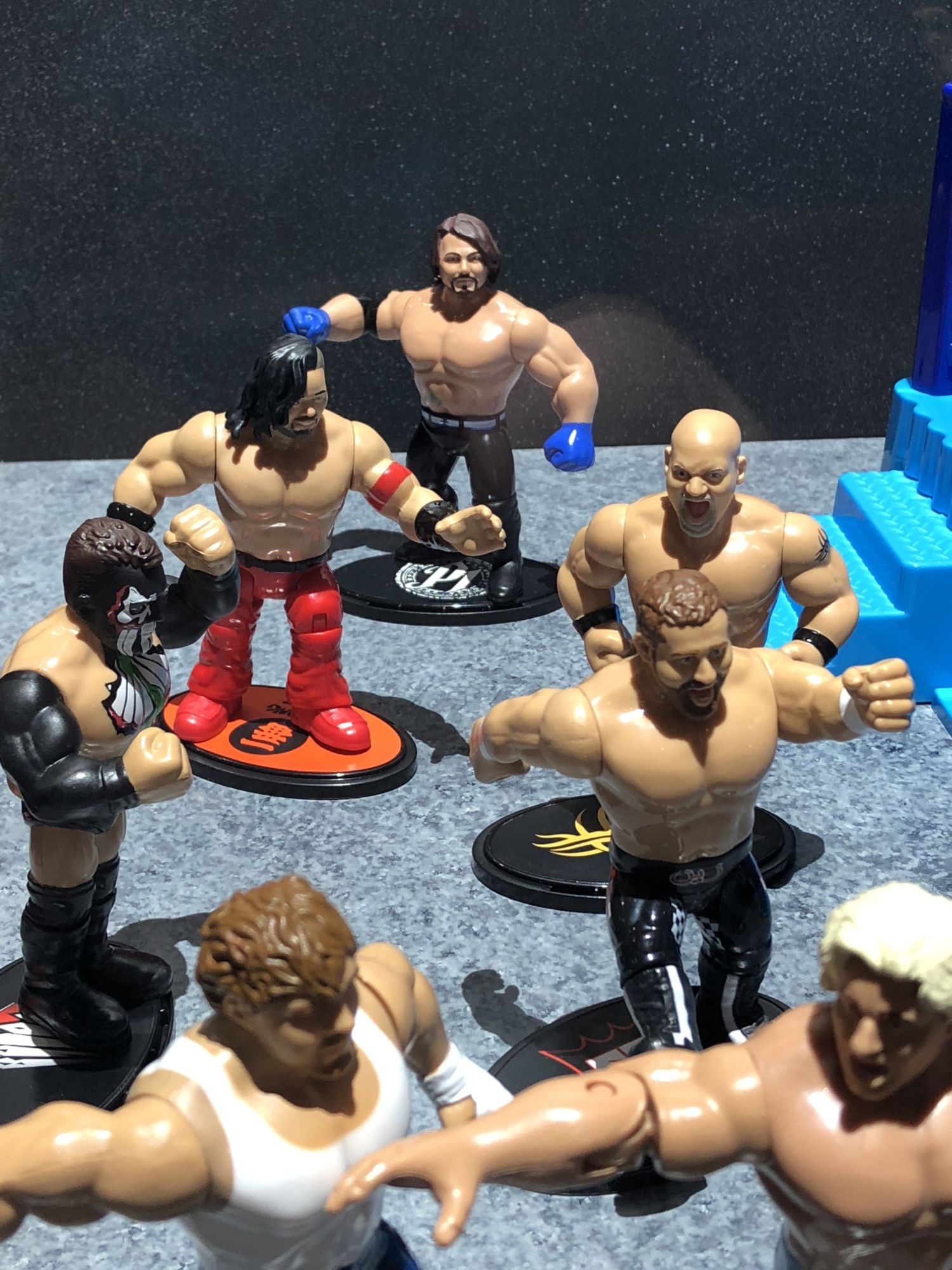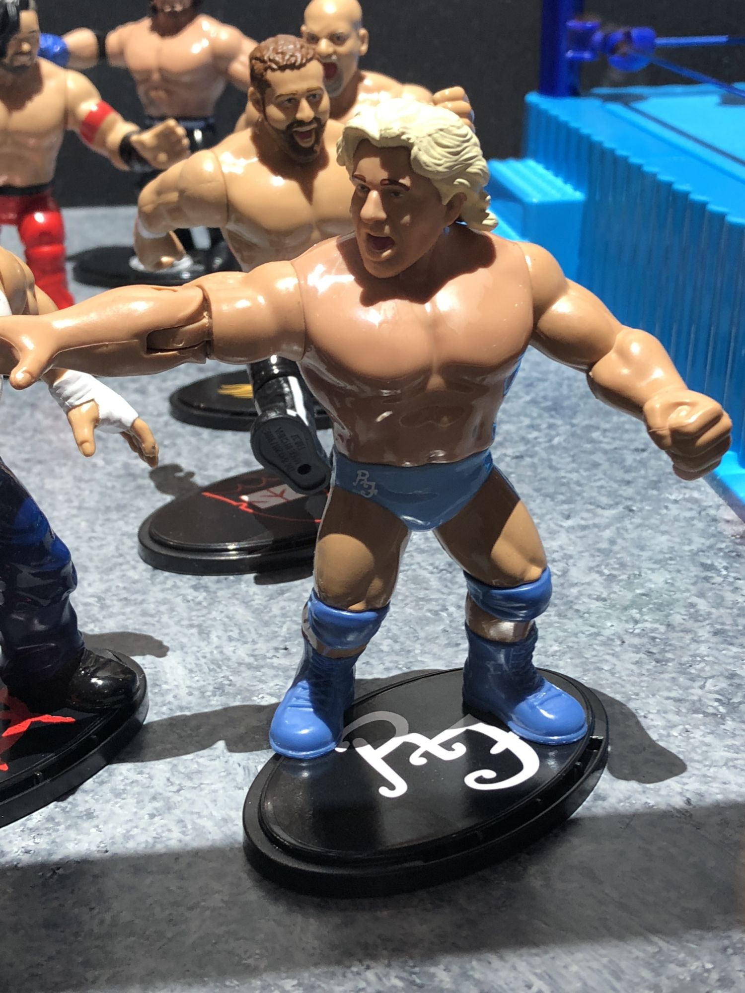 Exclusives will include an Attitude Era Triple H on Amazon, after Honky Tonk Man the net RetroFest figure will be a Hacksaw Jim Duggan. Two new Epic Moments sets will also be coming out: an Undisputed Era NXT pack featuring the first Adam Cole (BAY-BAY!)figure from Mattel. The other is truly epic. A Hardy Compound set complete with delapitated boat, Vanguard 1, and the Mower of Lawn. Crazy cool. Wrestlemania will also have an exclusive Asuka figure. And Entrance Greats comes to an end with Goldberg and Elias, giving way to a new line called Ultimate Edition.
