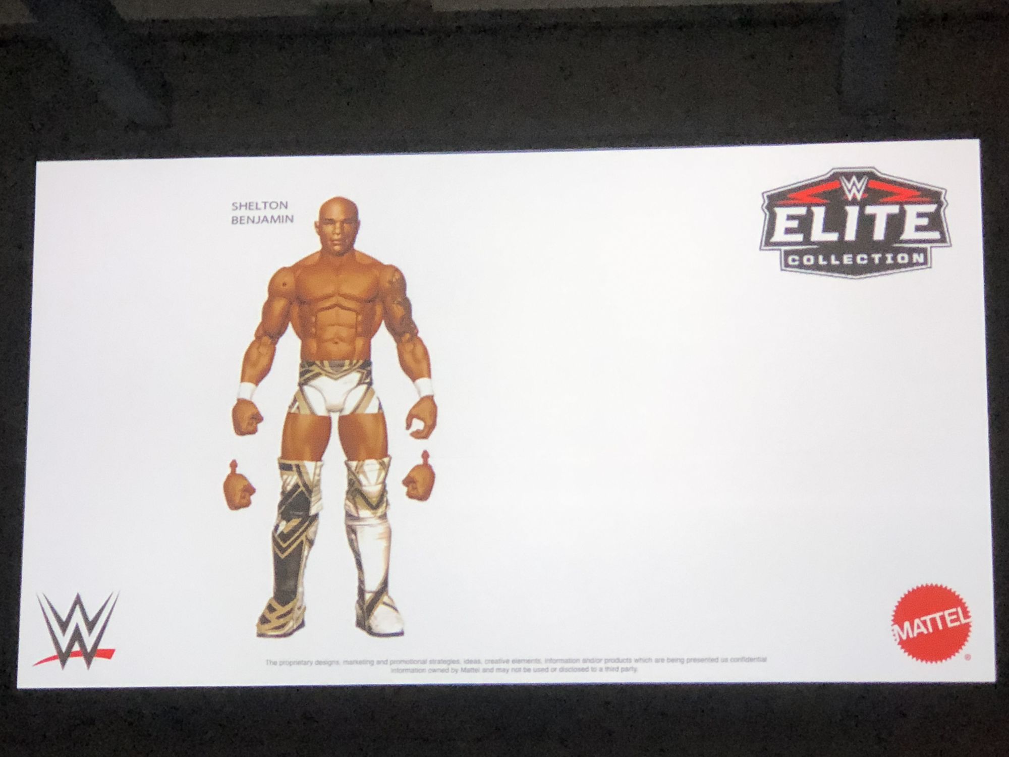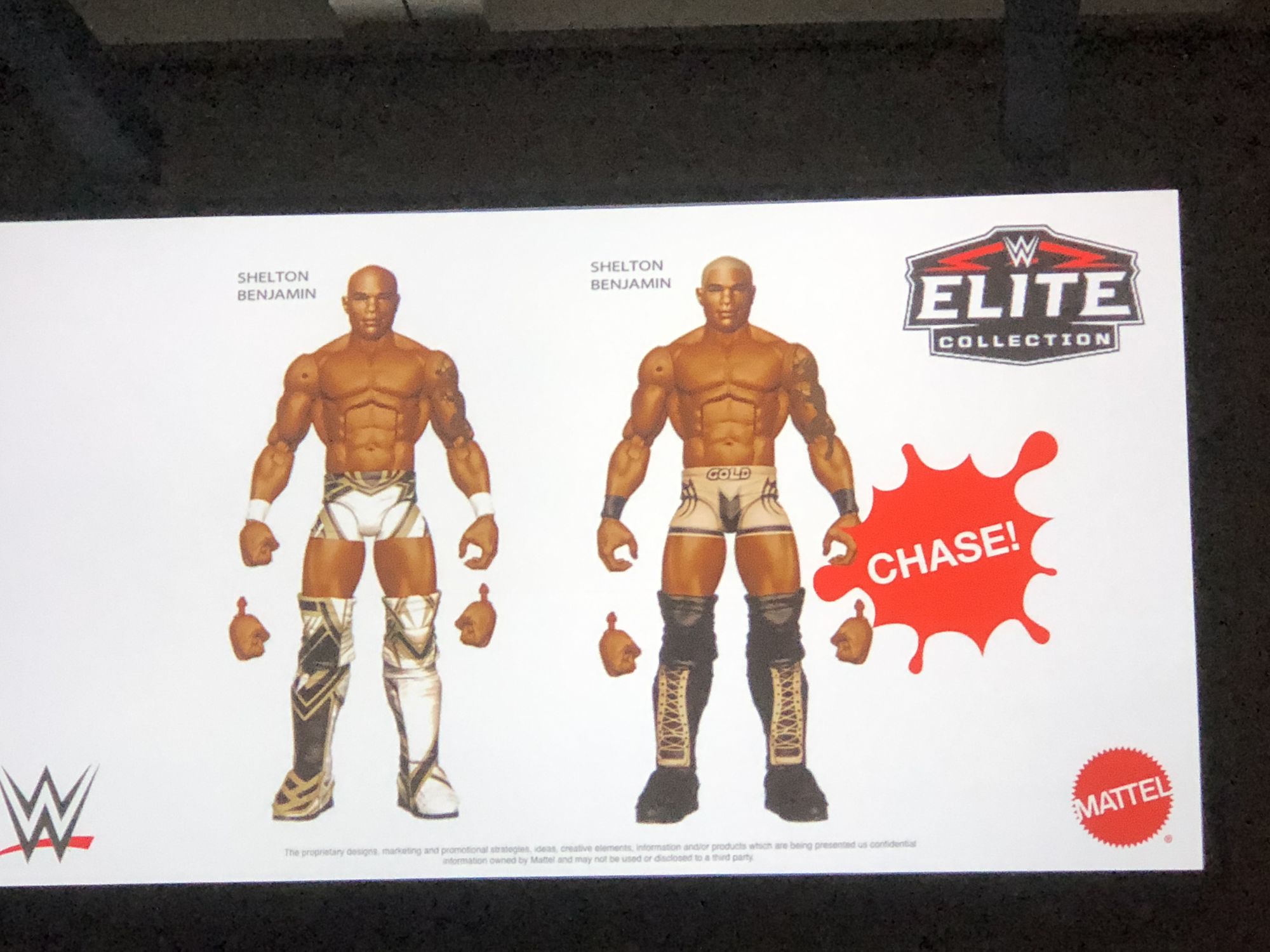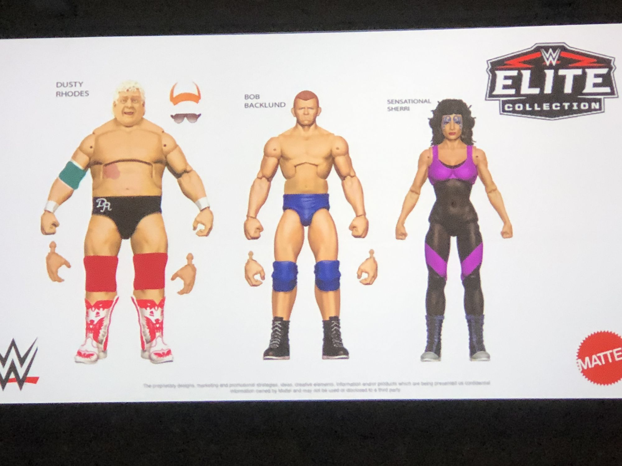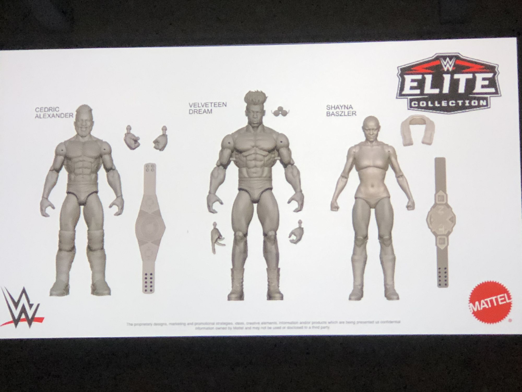 Then we moved on to Elites. And there were a lot of them. New to Elite figures are chase versions, featuring alternative gear and such. The first two figures that will have chase variants are the new Eilte figures of Shelton Benjamin and Curt Hawkins. TONS of other ones including Pete Dunne, Liv Morgan, Sanity, Velveteen Dream, and new versions of AJ Styles, Paige, and Nia Jax to name a few. Legends getting new figures include the long-awaited King Mabel, Pat Patterson, Bob Backlund, and a Sensational Sherri that will also come with a gown. Finn Balor has his "Balor Club for Everyone" figure coming out as well, which is awesome.
