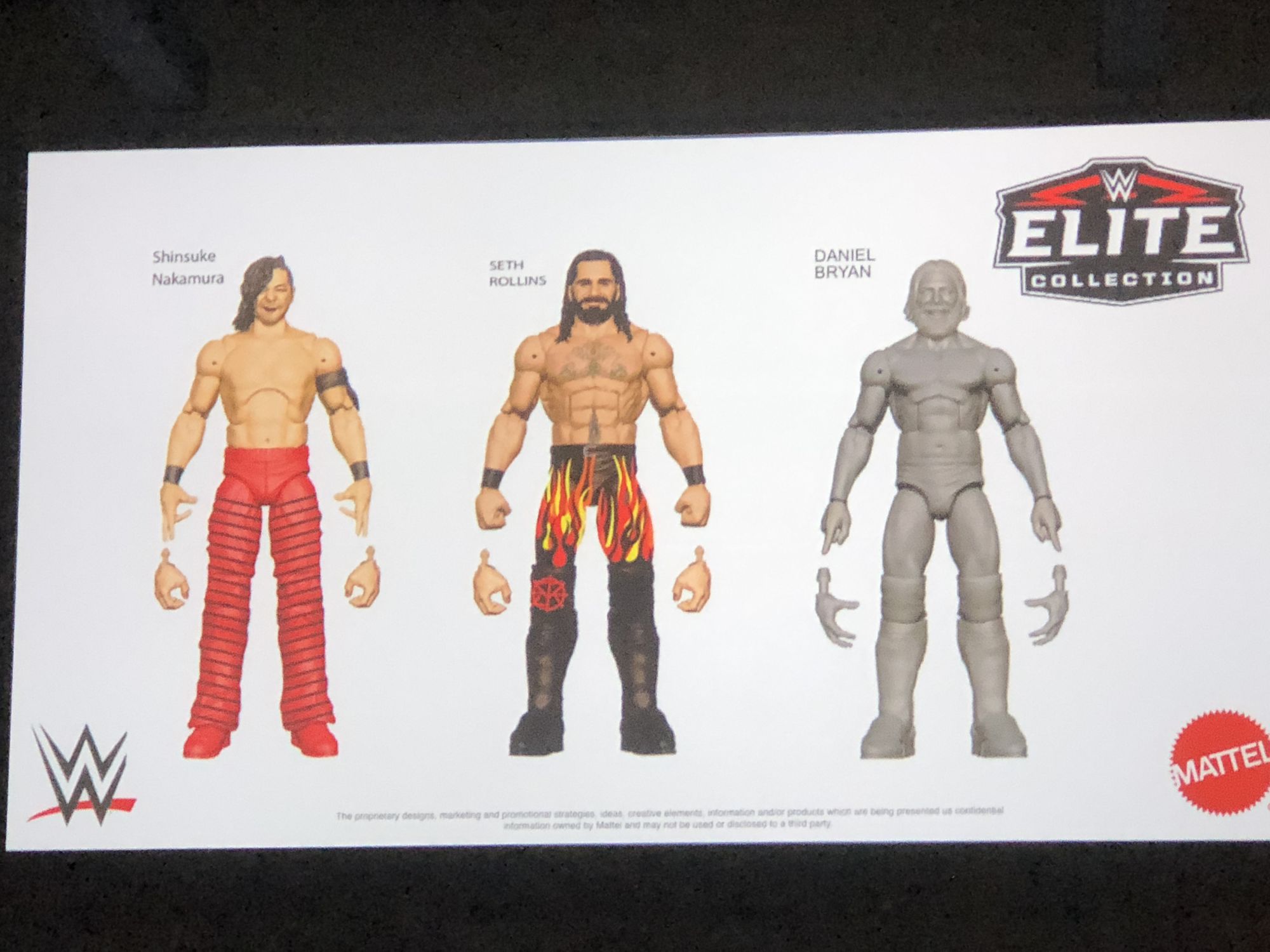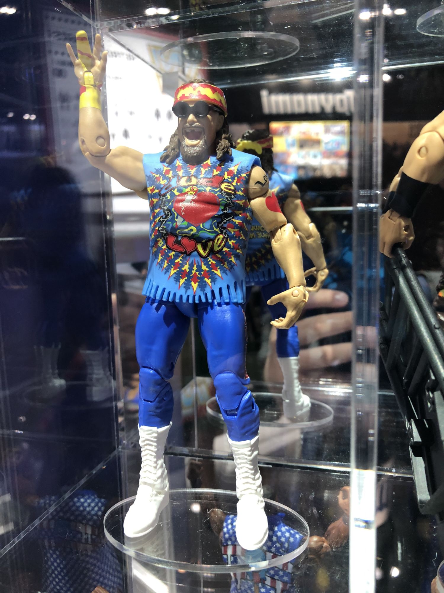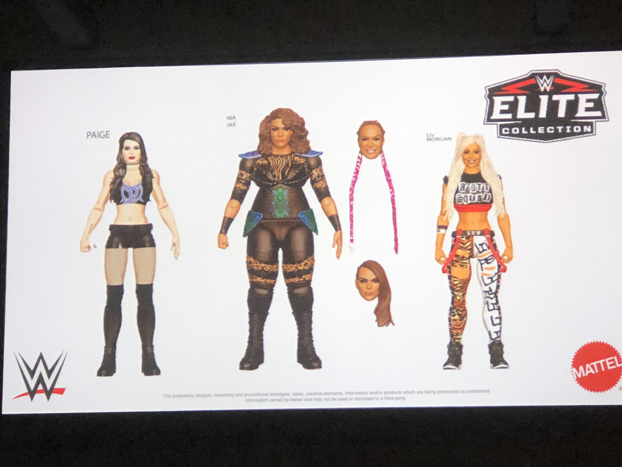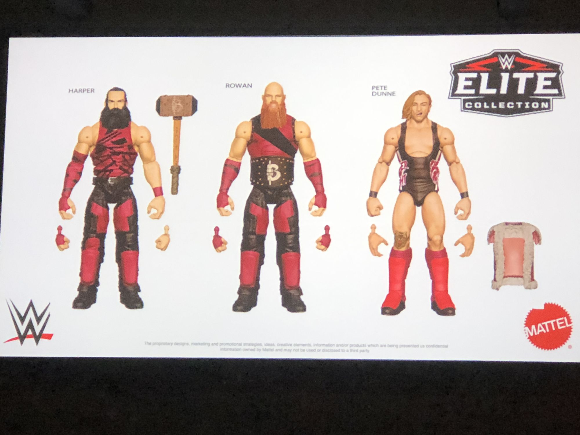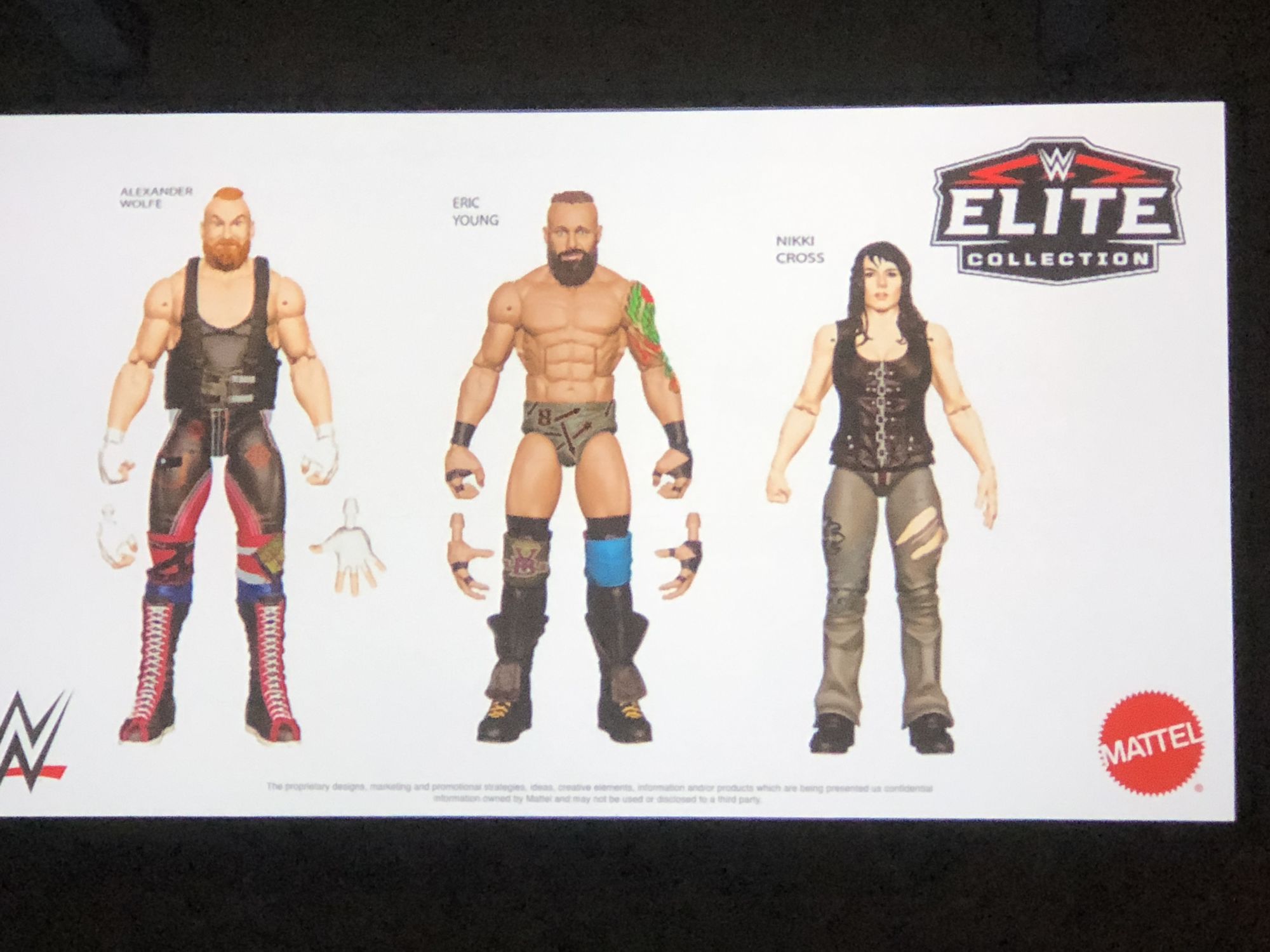 Then we moved on to Elites. And there were a lot of them. New to Elite figures are chase versions, featuring alternative gear and such. The first two figures that will have chase variants are the new Eilte figures of Shelton Benjamin and Curt Hawkins. TONS of other ones including Pete Dunne, Liv Morgan, Sanity, Velveteen Dream, and new versions of AJ Styles, Paige, and Nia Jax to name a few. Legends getting new figures include the long-awaited King Mabel, Pat Patterson, Bob Backlund, and a Sensational Sherri that will also come with a gown. Finn Balor has his "Balor Club for Everyone" figure coming out as well, which is awesome.