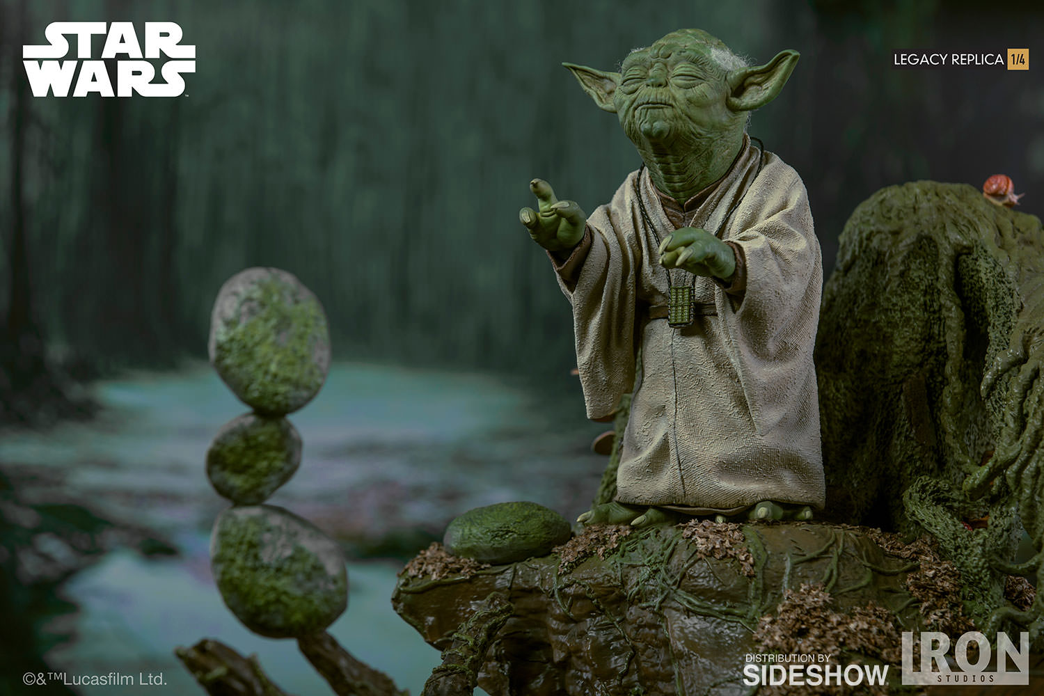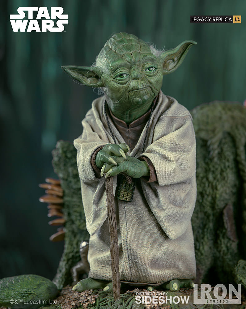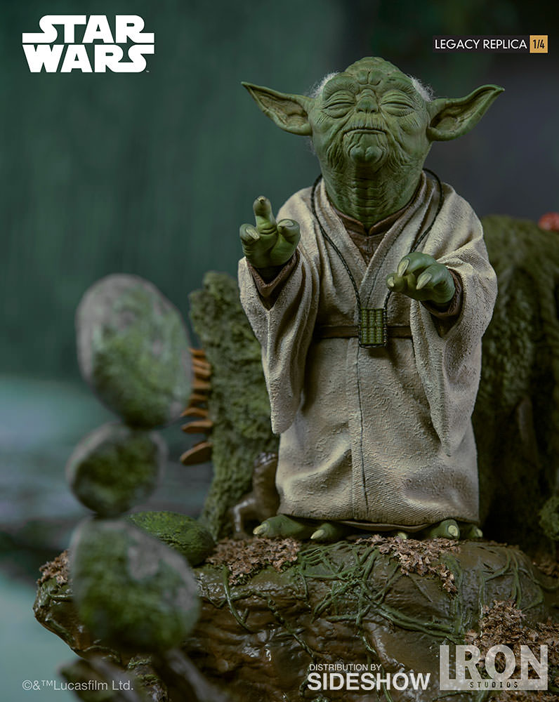 Sideshow and Iron Studios are proud to announce the latest from the Legacy Replica 1:4 Scale line – Master Yoda! Based on references from the film, this statue includes insects and animals to place around the base, a box of included accessories as well as two body positions for Yoda!