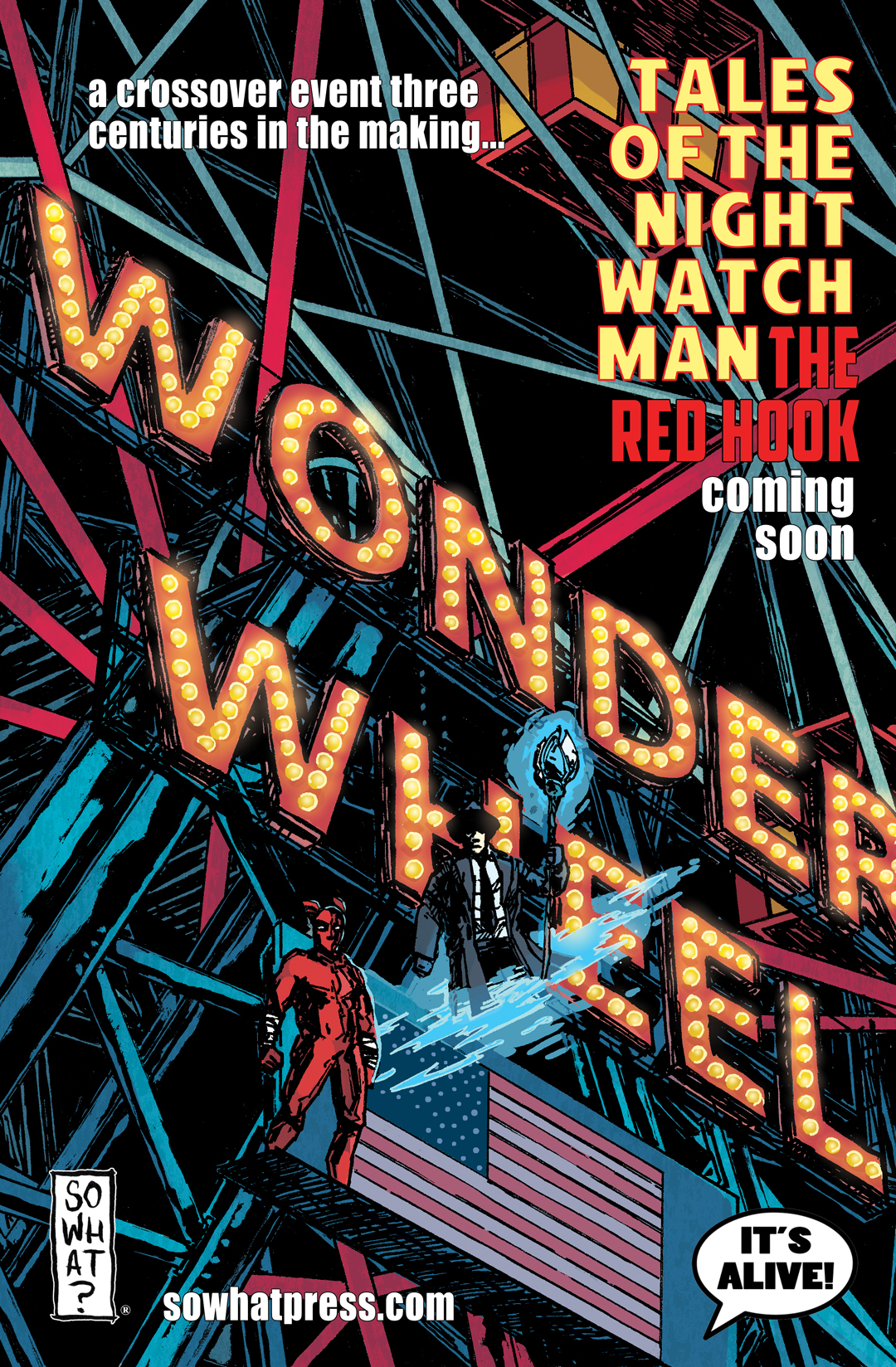 "The Final Kill" involves a race against time as the Night Watchman is hired by a mysterious woman to protect her family from an ancient flesh-eating god called Zahal. "The Untold Legend of Luna" is a crossover event three centuries in the making as the Night Watchman and the Red Hook team up to travel back in time to save Brooklyn's first superhero, a woman of mystery named Luna, who has been erased from history.