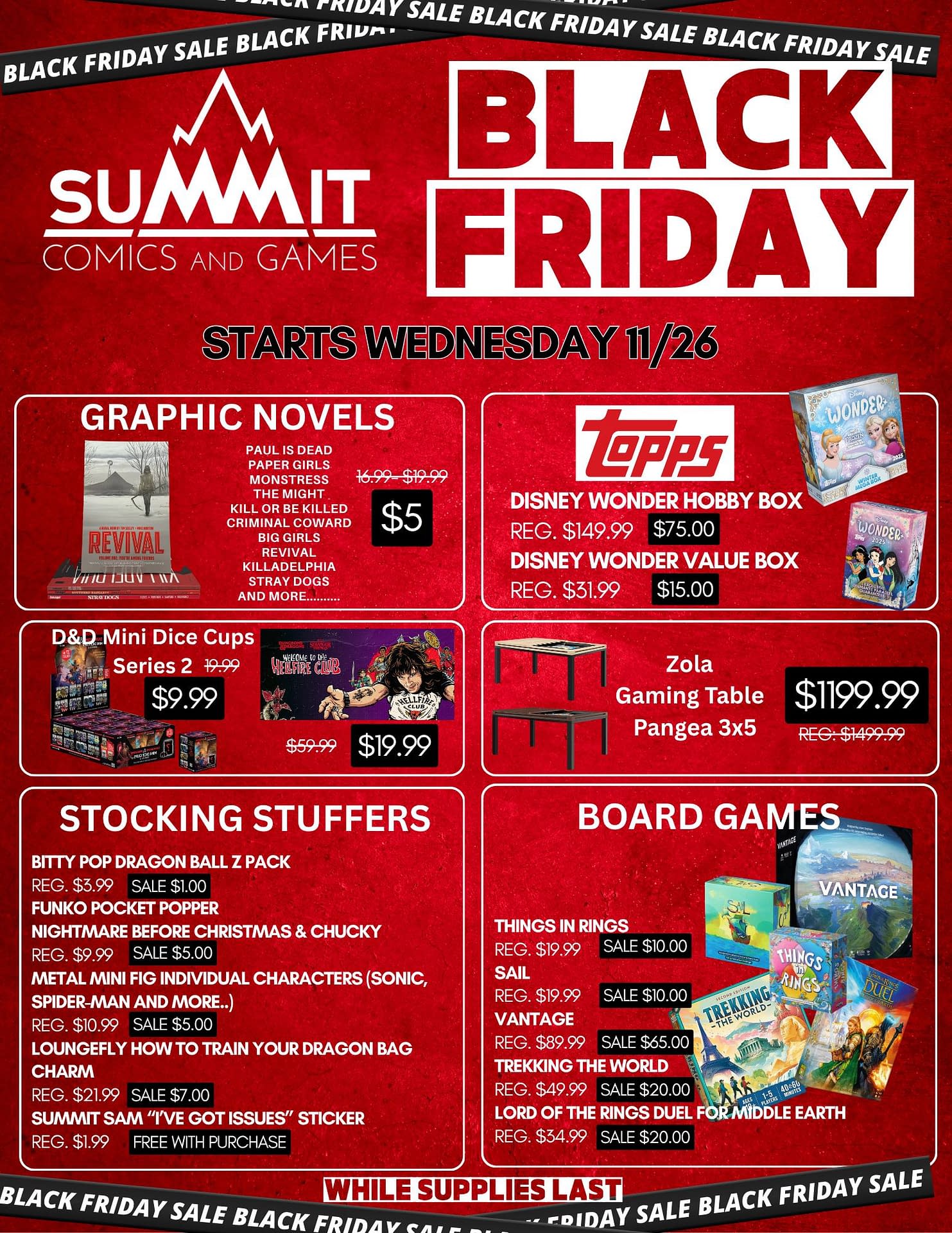 Today is Black Friday. It began as a retail resurgence following America's Thanksgiving, and it gained traction internationally after Amazon started doing it, even though no one else celebrates this Holiday. Here's a look at one hundred and four in-store comic book-related Black Friday deals sent my way.