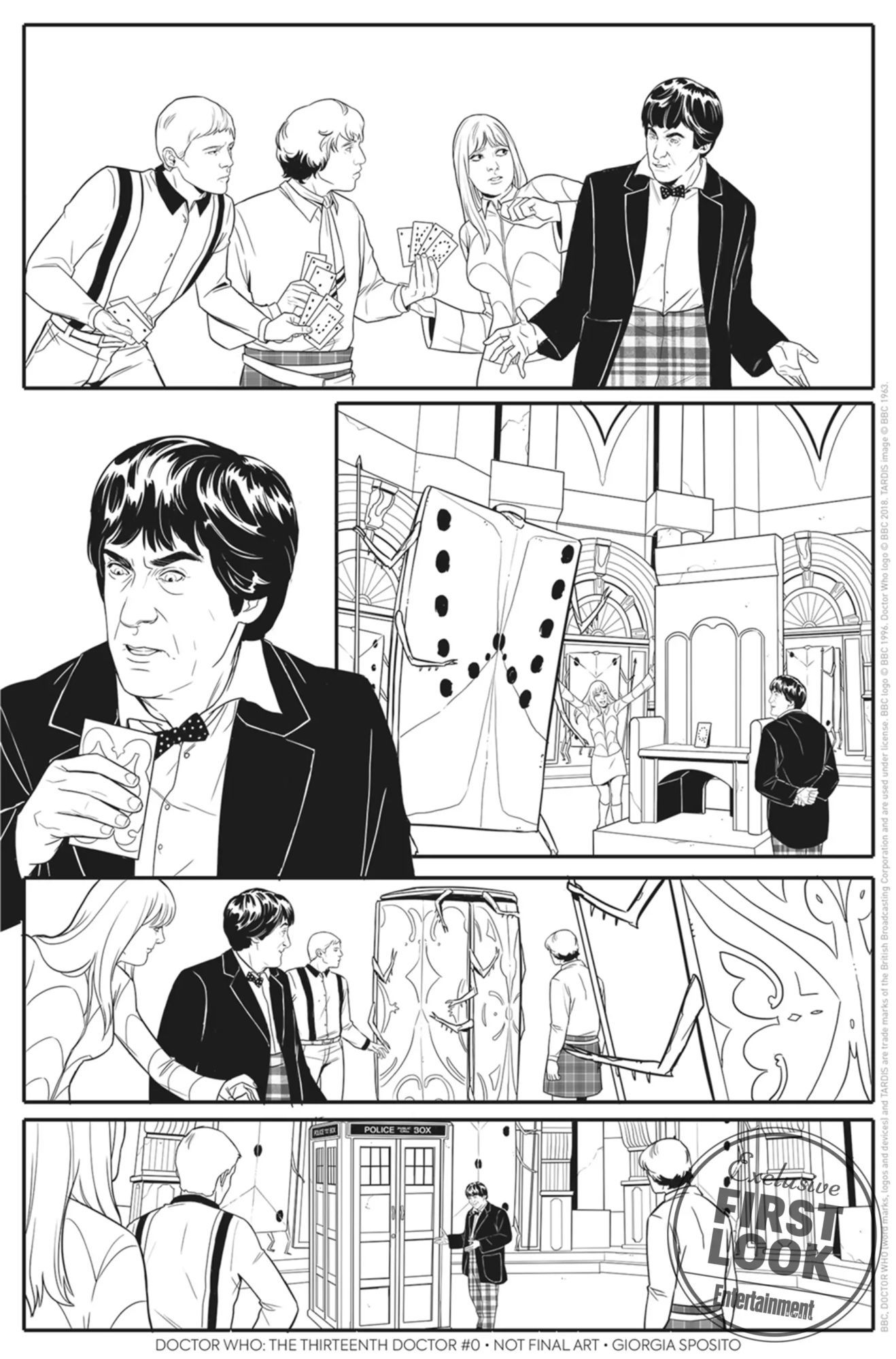 Doctor Who: the Thirteenth Doctor Vol. 0 – The Many Lives of Doctor Who's existence was revealed back at the Diamond Retailer Summit in April before C2E2, but Entertainment Weekly glommed the EXCLUSSSIVE reveal of all the details Thursday, and they took full advantage of that opportunity to plaster their watermark all over their EXCLUSSSIVE preview images, presumably because it makes them feel validated. And who are we to deprive an entertainment website of such validation? That's why we've copied all of the images and pasted them below.