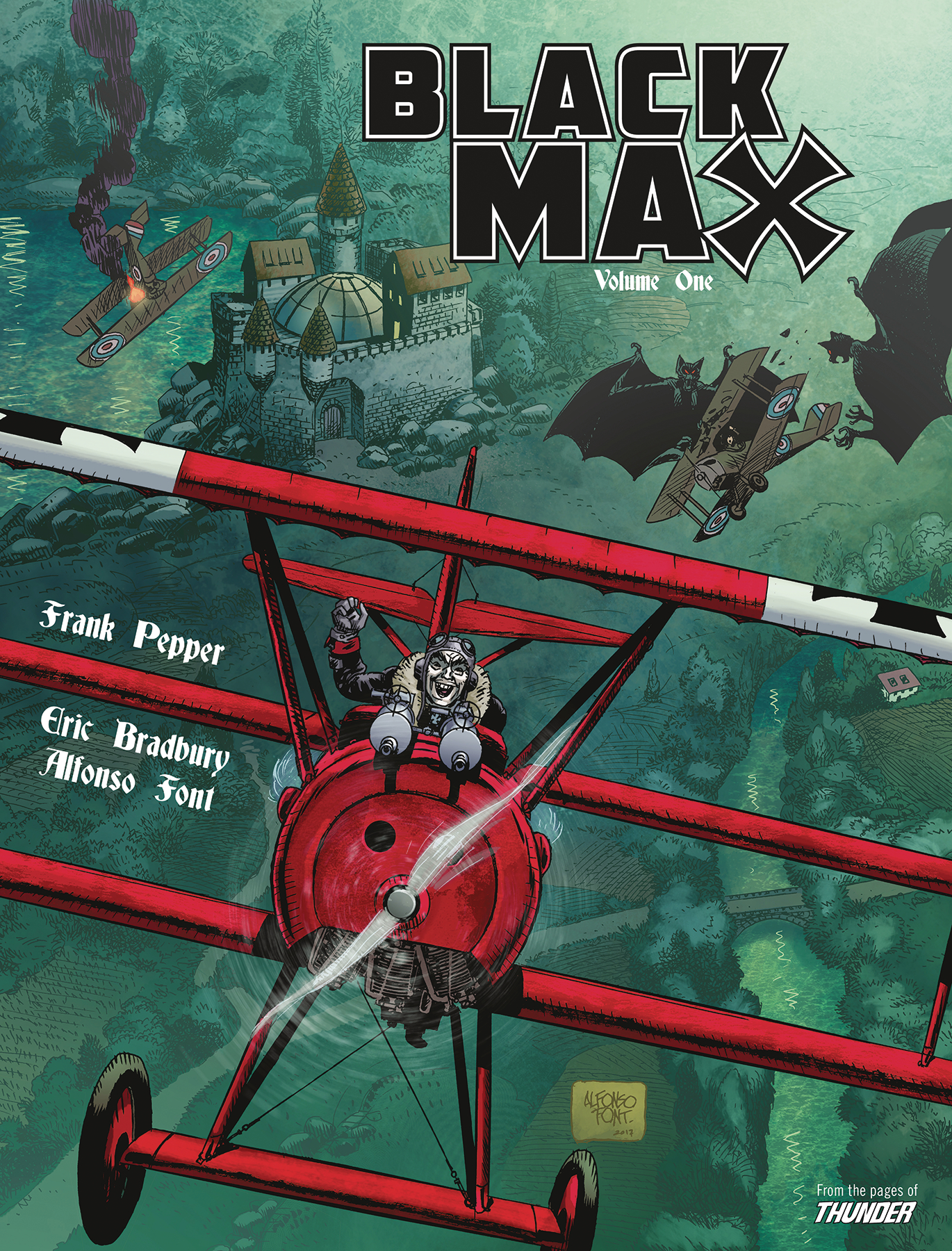 Ace fighter pilot Baron Maximilien Von Klorr is the scourge of the skies, menacing the Allied forces during the bloodiest battles in WWI. Skilled, ruthless and in possession of two giant, mutated kingbats who fight by his side, Von Klorr AKA Black Max is almost unstoppable. Only the brave pilots of the Royal Flying Corps, including Lieutenant Tom Wilson, oppose the Black Max's complete dominance of the air. Thrilling supernatural war comics from the pages of classic British comics Lion and Thunder!