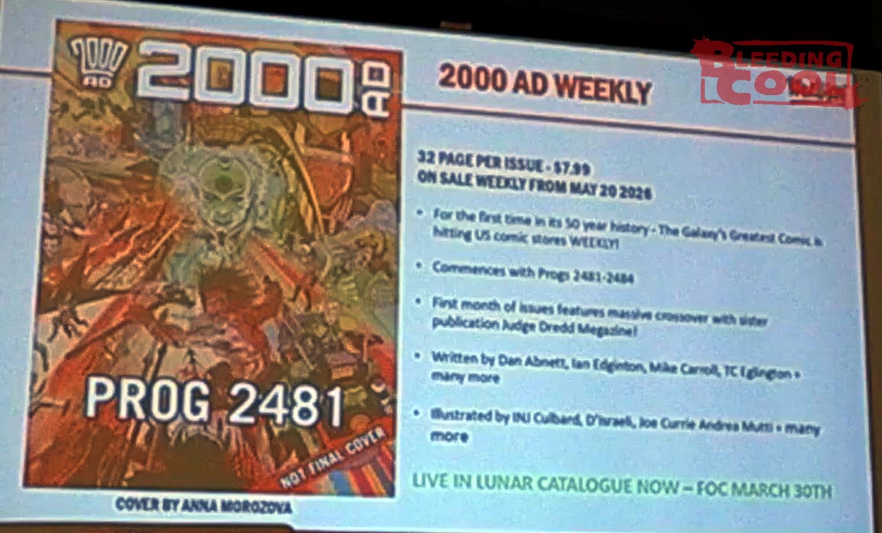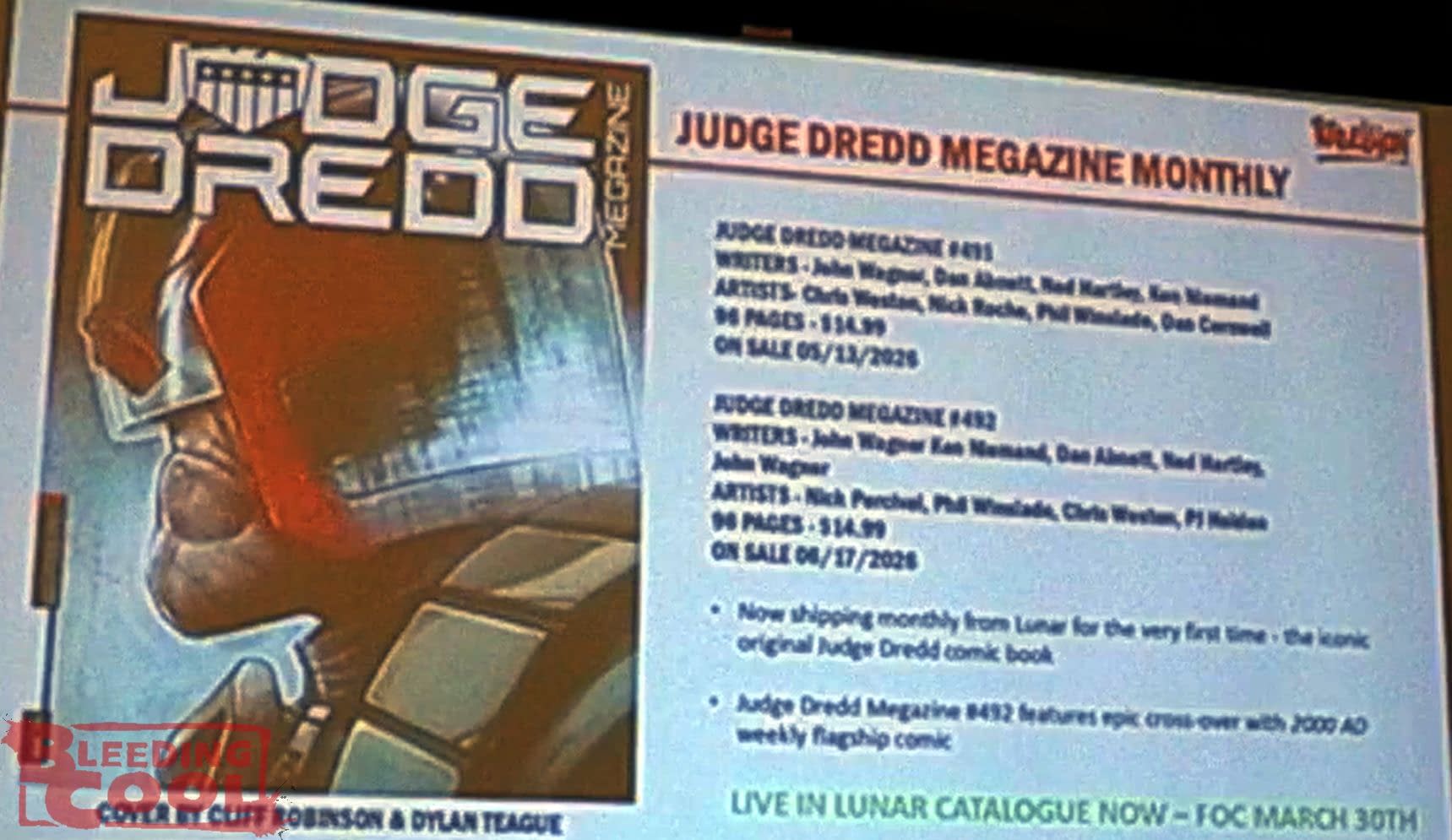 "Also, a reminder that Lunar also carries the monthly Judge Dredd Megazine—issue 492—which is in the same catalogue – isa big crossover event. We don't normally do crossovers, but the 2000 AD and the Megazine crossover for that month is just to really juice onboarding. Judge Dredd Megazine 500 is coming, and that's going to be really nuts. Prog 2500 is obviously in our future as well, so we'll be planning some big things for those anniversaries."