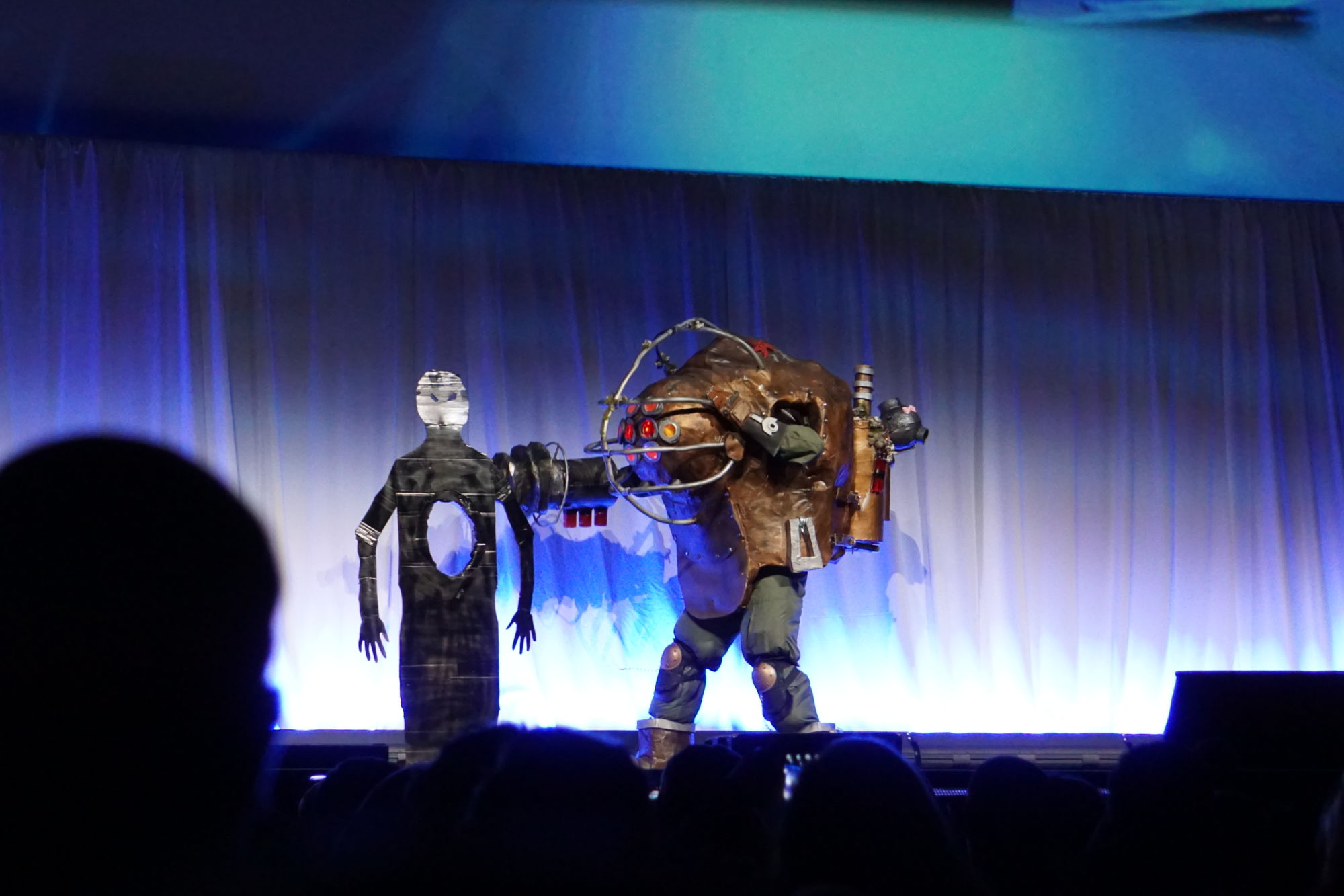 The WonderCon Masquerade celebrated its 15th year celebrating the verb "to masquerade" to portray someone other than yourself, and contestants bring to the stage as much imagination as they do skilled workmanship by portraying characters and creating inventive presentations with drama, humour, a storyline, and sometimes a mock battle.
