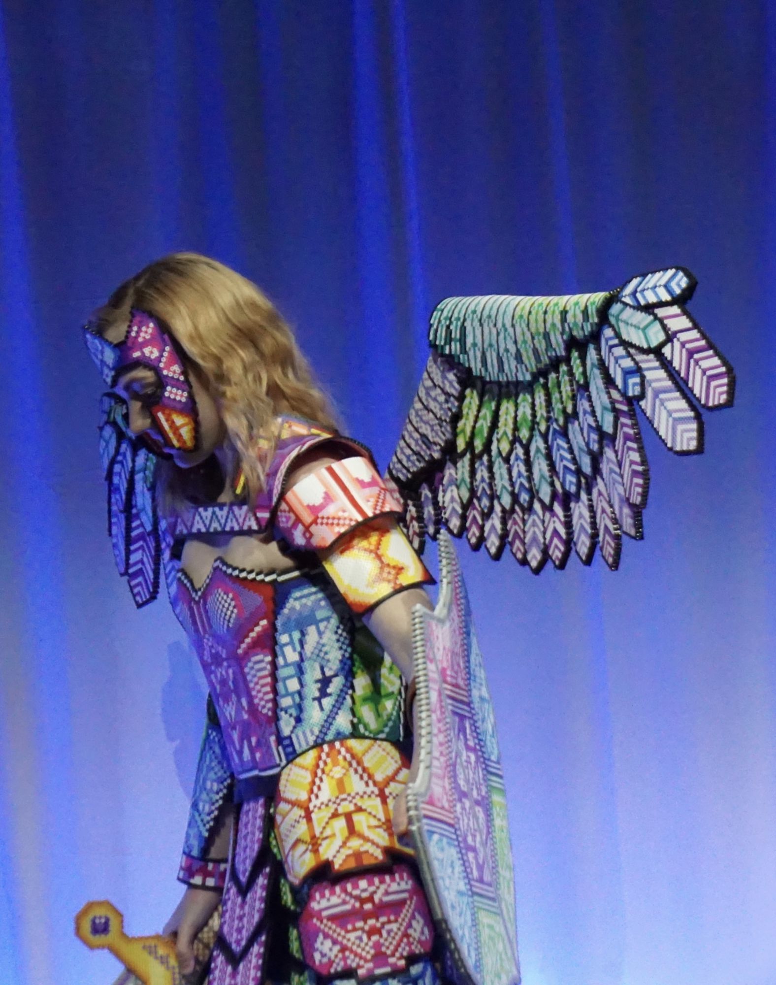Each entry took the stage for a minute or two, with presentations using specially selected music and lighting, and some elaborate choreography. Re-creations from comic books, movies, television, anime, fantasy, stage shows, video games, and history, or even completely original designs. Some were solo entries, others as groups with a shared theme. And none of costumes purchased or otherwise commercially obtained, and of original construction.