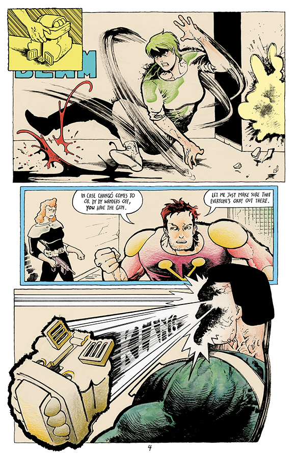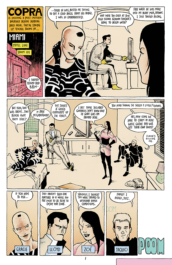 Michel Fiffe's mainstream superhero comics-meets-small press sensibilities mashup COPRA has been picked up for collection and publication by Image Comics and in October is getting its first ongoing series. And we have four pages to show off from its first issue, even at this very early stage… watch for the whole thing come October 2nd.