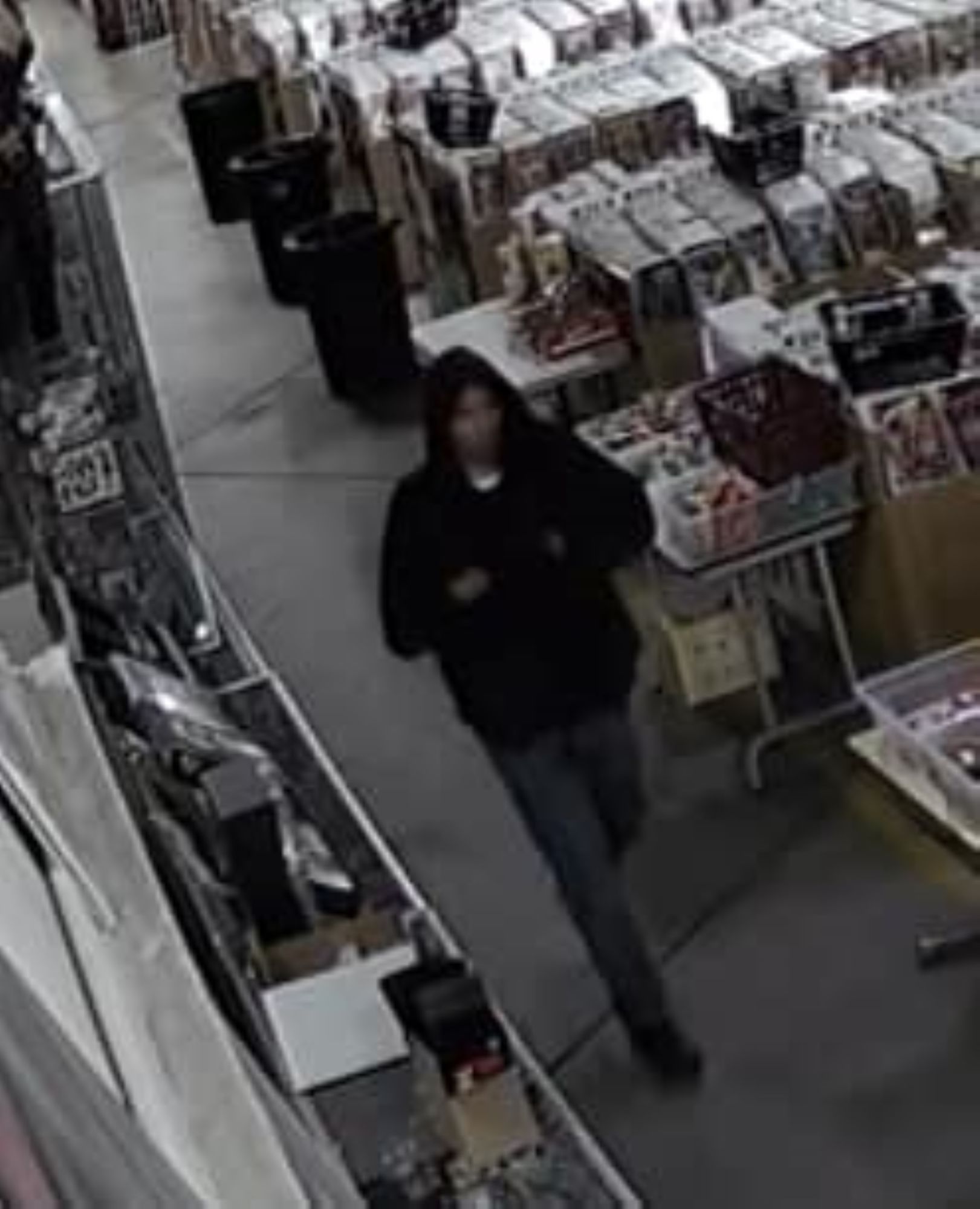 Someone broke into Jason St. last night through one of the rail dock doors, then stole 14 comics valued at $42,000+ by smashing through a locked showcase. He cut himself in the process, and we have a video recording. The person in the photo below is the only one who was in our store in the middle of the night. If you know him, we would very much like to have him identified. Whoever took our books did leave the first item (McFarlane original art) on the list below behind…