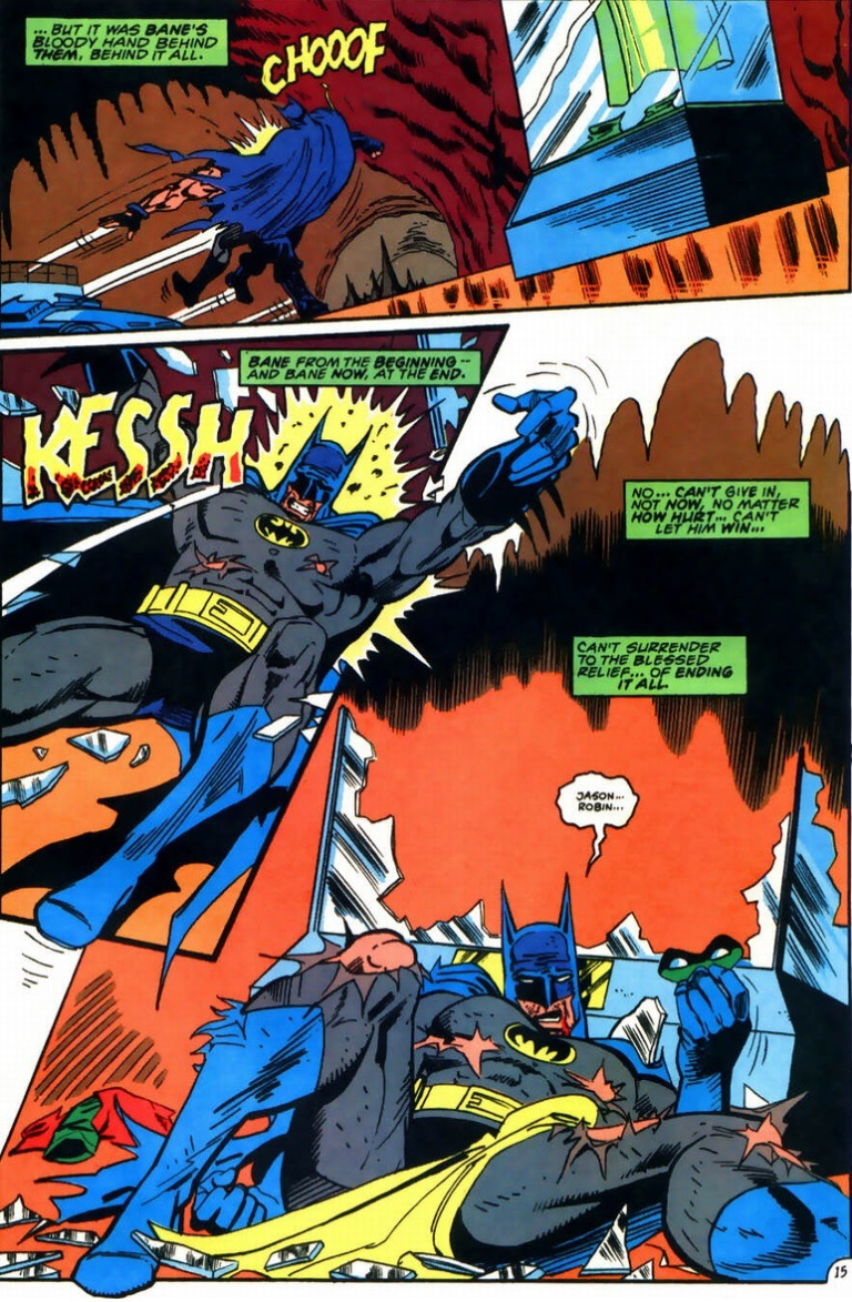 In the Batman comics, there is one Bane scene that will always stick out, from the nineties Knightfall event, in which Bane did this. After setting Batman up for a fall, releasing villains from Arkham Asylum and using them to wear Batman down over months, until…