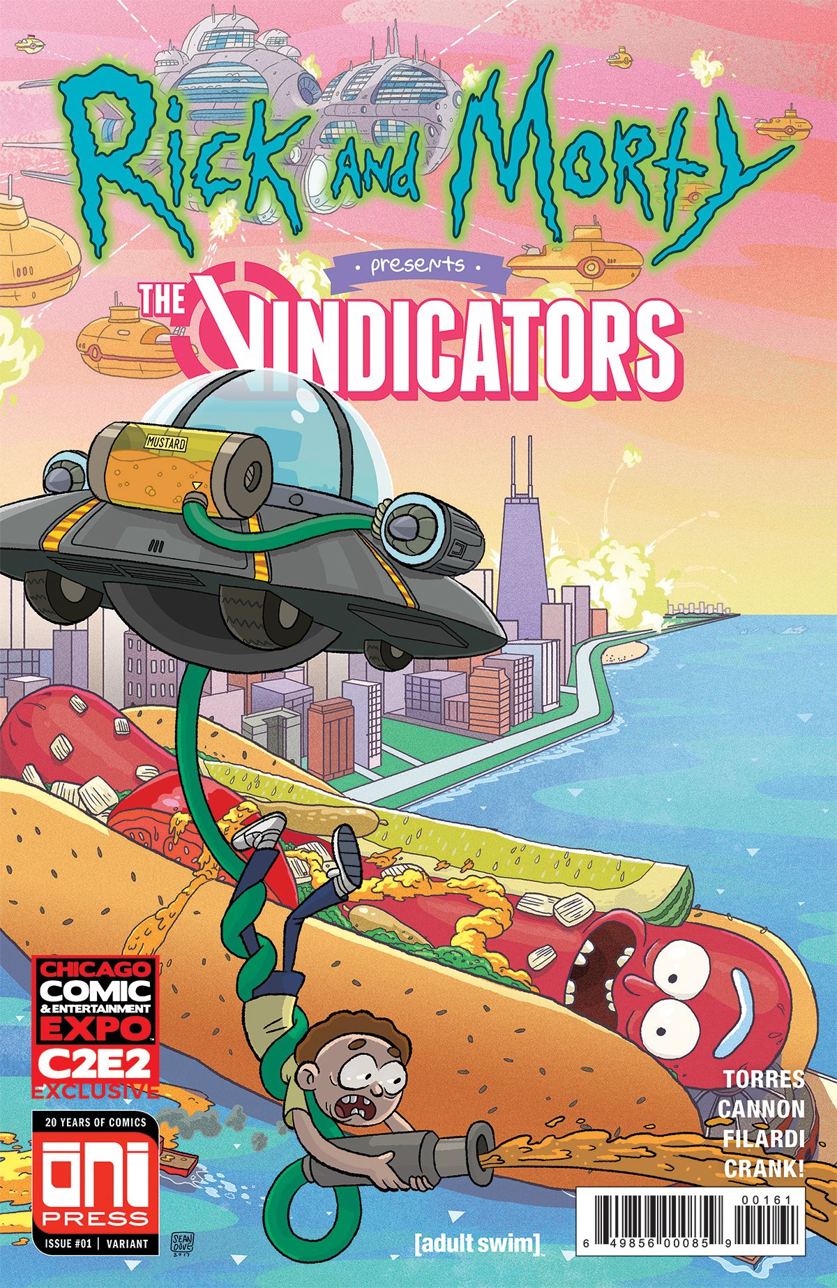 A C2E2 2018 exclusive variant of RICK AND MORTY PRESENTS: THE VINDICATORS #1 by J. Torres and CJ Cannon with Nick Filardi. $10