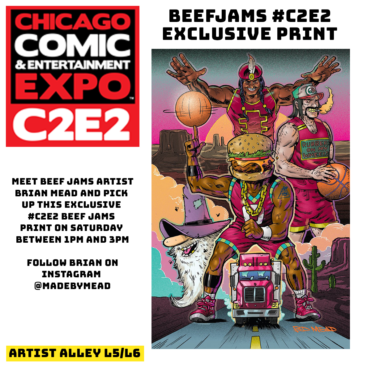 Beef Jams Tournament Edition is a full-color 46-page anthology comic featuring a ragtag group of Basketball Playing Long Haul Truckers and their off-the-court hi-jinx, led by their All-American Mascot, Phylo the Cheeseburger. Phylo is joined by smut philosopher power forward, Axel Suede, feral old tymey prospector point guard, Big Run, and vaping Romeo center, Cheef Chaw. Cover by Grammy-Nominated artist Benjamin Marra. The writers of Beef Jams, Marc Koprinarov and Dave Landsberger, along with co-creators and artists, Greg and Fake, will be at table L5/L6 in the artist alley all weekend to sign copies and talk hoops. Other show exclusives include: