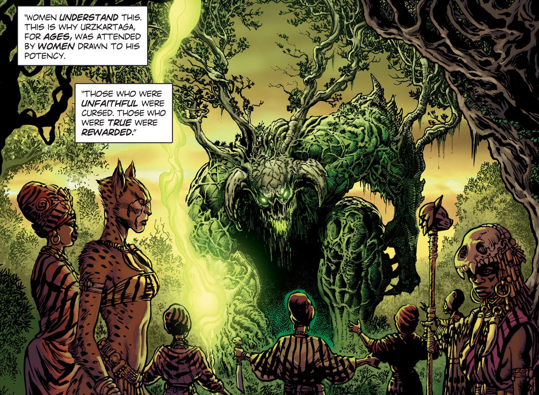 On an African expedition, she's demands to be inducted into a ritual by a priest, bonding her to the plant god Urzkartaga, a cheetah deity.