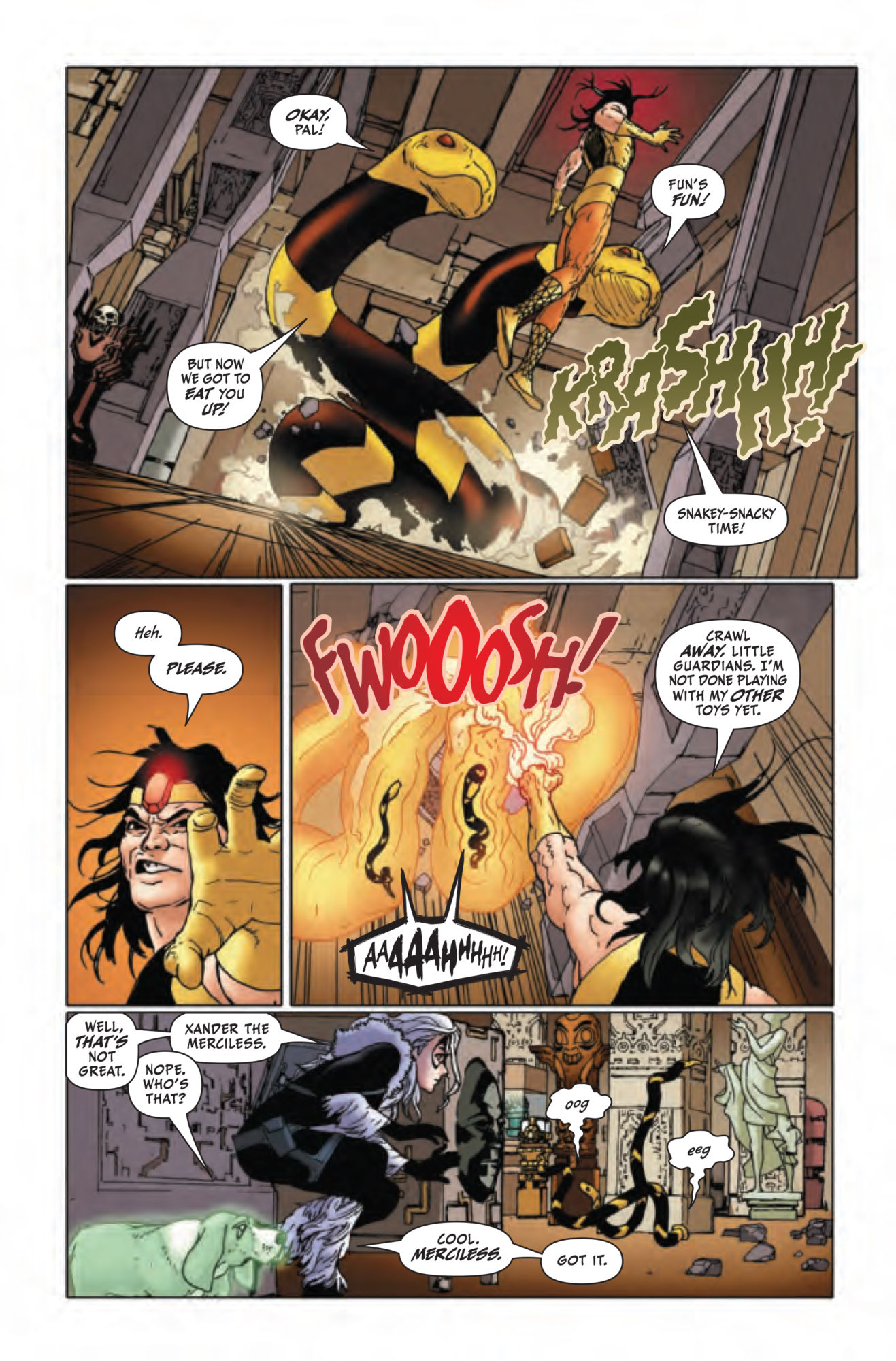 Black Cat #1 inexplicably sold a buttload of comics, but while that may have more to do with variant covers and other Marvel nonsense, the adventure taking place inside the book itself has actually been pretty entertaining. And as we see in this preview of Black Cat #3, the insanity is only escalating, as the "merlin" Felicia hired to help her conduct a heist in Doctor Strange's mansion. Of course, once Xander the Merciless is inside, he uses the opportunity to regain control of his Star-Stone, and then, well… all hell breaks loose…