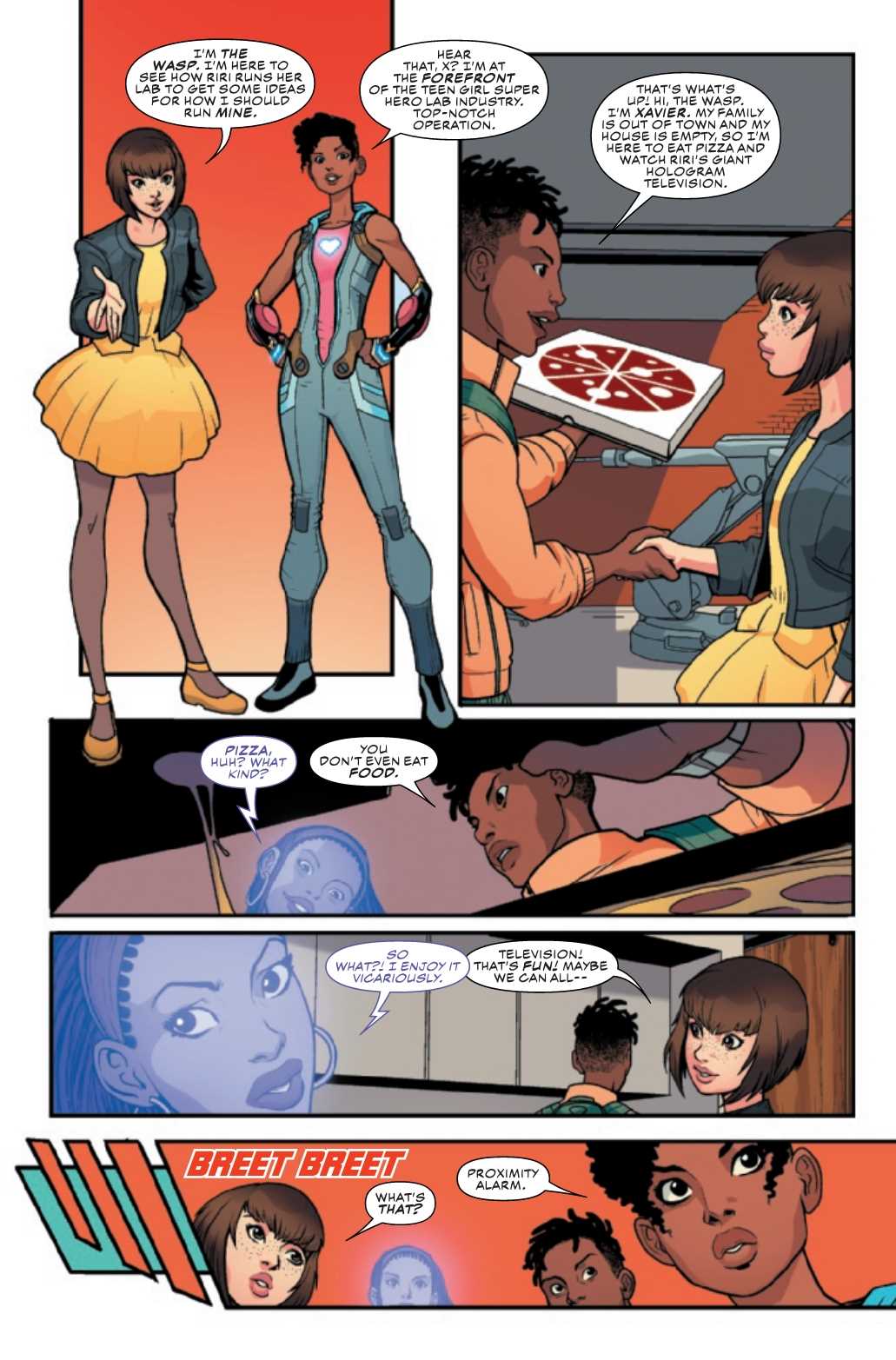 The IQ on this team-up is off the charts! Nadia Van Dyne, A.K.A. the Unstoppable Wasp, swings by Chicago to visit Ironheart…but neither of them was expecting a zombie invasion! Can these two girl geniuses put their heads together and figure out what's turning ordinary Chicagoans into the walking dead? Read and find out, True Believers!