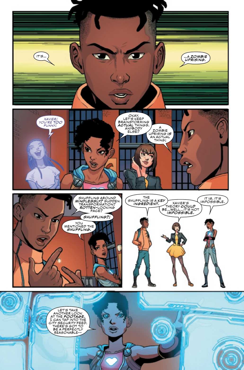 DC is doing their own version of Marvel Zombies right now in the hit mini-series, DCeased, so it's only fair that what goes around comes around. So in this preview of Ironheart #7, we see what appears to be a zombie pandemic breaking out, when an alert sounds…