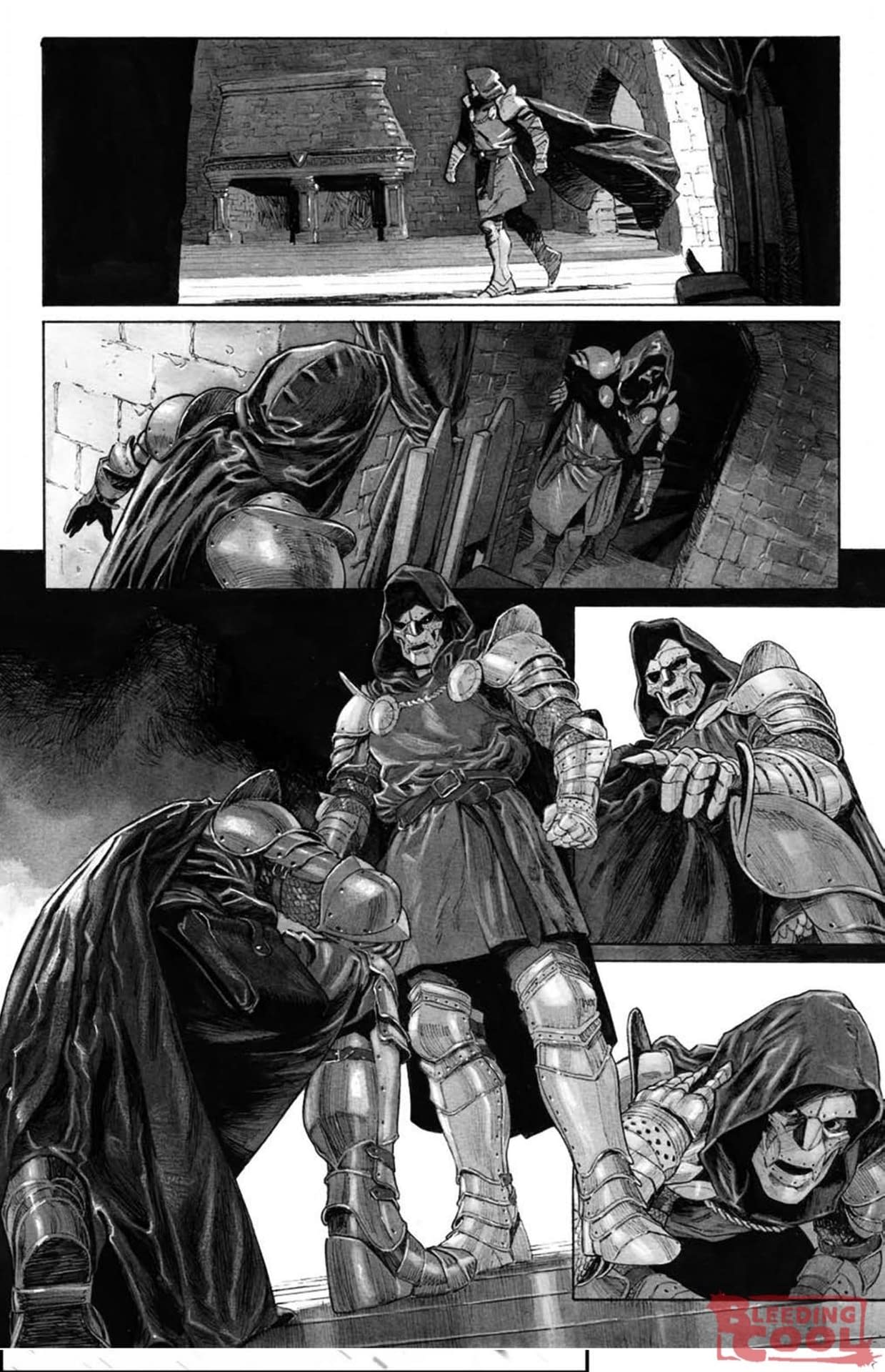 The Armageddon event is upon us, as seen in recent issues of Will Of Doom, Dungeons Of Doom, Captain America, Wolverine: Weapons Of Armageddon as well as Miles Morales: Spider-Man and the upcoming Ultimate Reborn and Avengers: Armageddon to set all of this up. It will kick off properly with Free Comic Book Day/Comics Giveaway Day on the 2nd of May and Armageddon / X-Men #1. And Bleeding Cool has just one page, unlettered and uncoloured, of that to share. With Doctor Doom coming face-to-face with himself. Or, at least, a Doombot is…