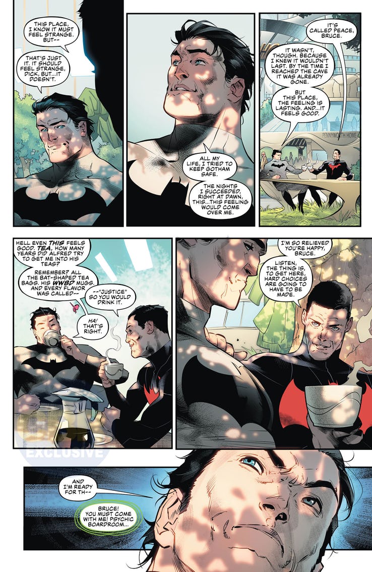 Hopefully, Batman snaps out of his happy funk before it's too late for Superman… though we have to admit, we'd be happy too to learn Dick Grayson finally stopped going by that stupid "Ric" name.