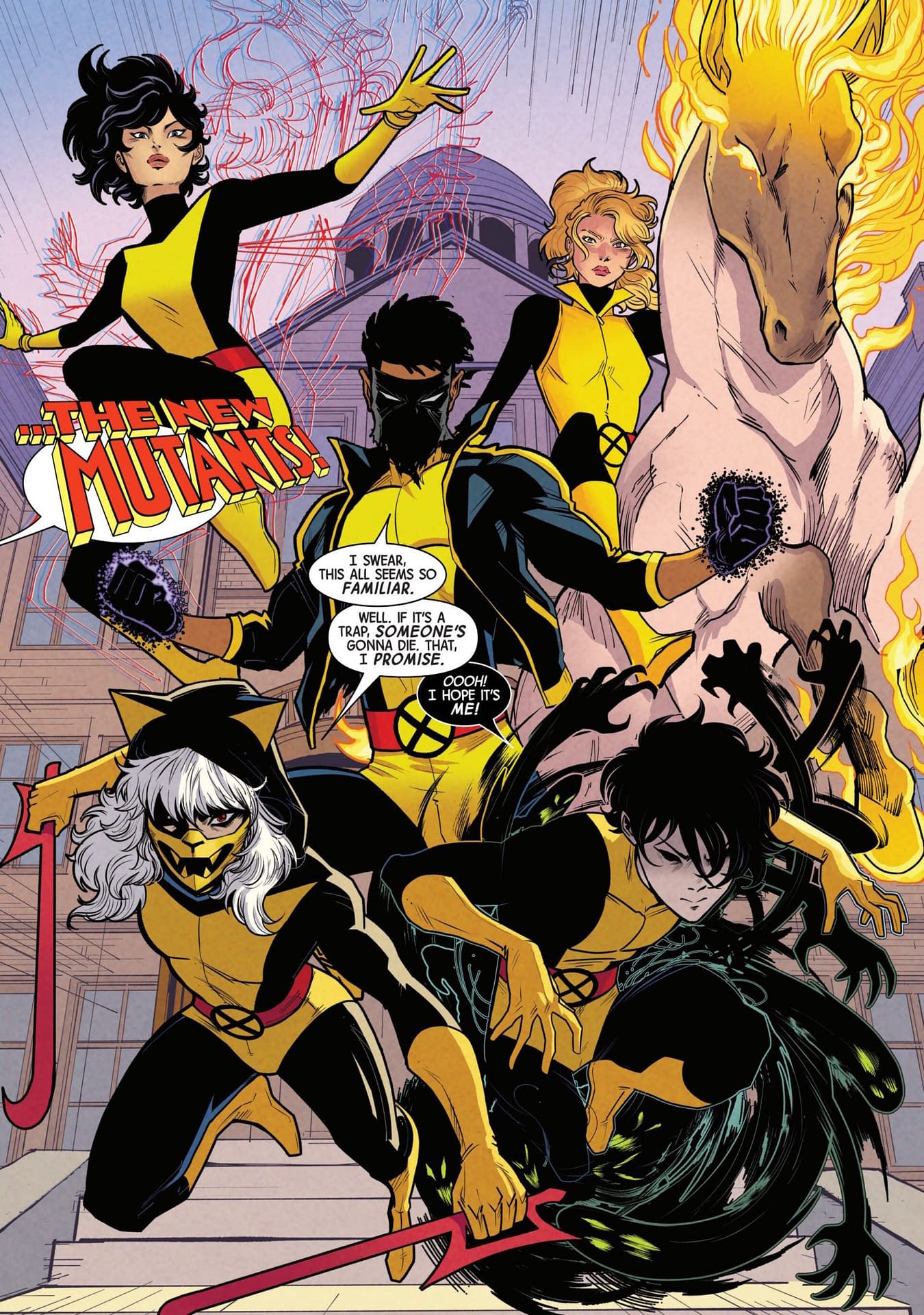 Ladies and gentlemen, we have the new New Mutants. And whatever this timeline is, whatever this state of reality, when normality is resumed, will they keep the name? WHat about the costumes? And, um, what about Mutina?