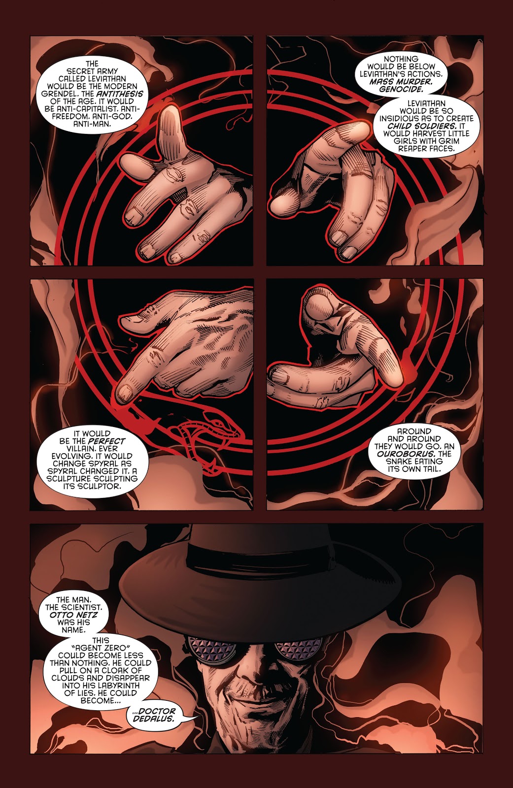 UPDATE: That'll teach me to be clever clever. (No it won't). That particular take on Leviathan was from Grayson #13 and #14 by Tom King, Tim Seeley and Mike Janin, which Bendis rather neatly picked up on.