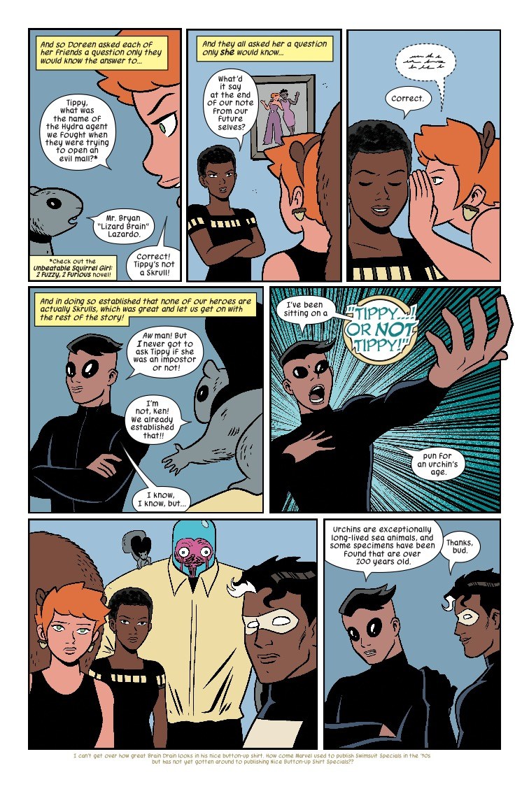 • …is what you'd be saying if you only read the cover of our last issue and NOT the contents, in which we revealed a shocking twist: Squirrel Girl…IS ALIVE?