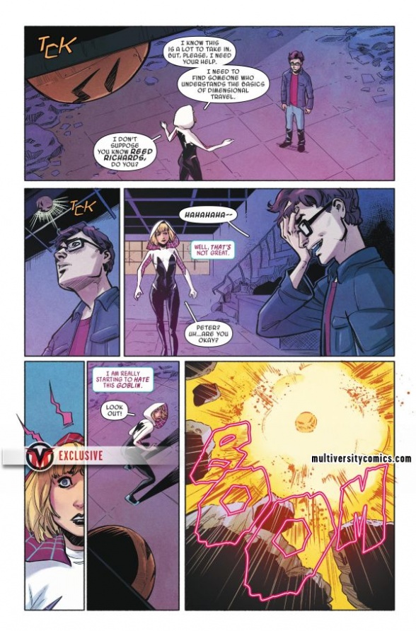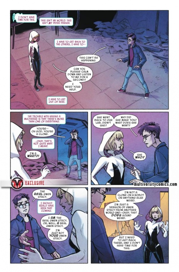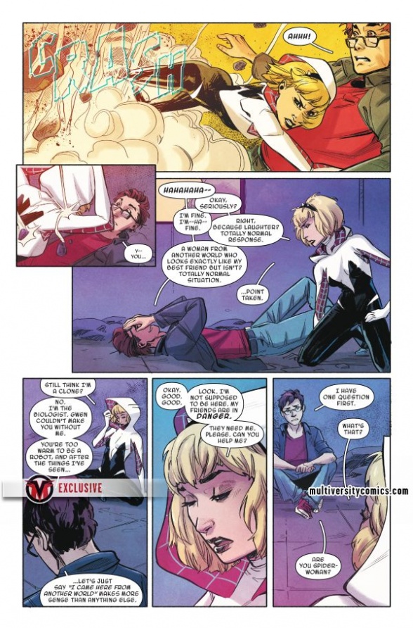 Multiversity had the EX-X-XCLUSIVE preview of this one, as you can tell from the ugly watermark rudely plastered all over it. Spider-Gwen: Ghost Spider #2 hits stores next Wednesday.