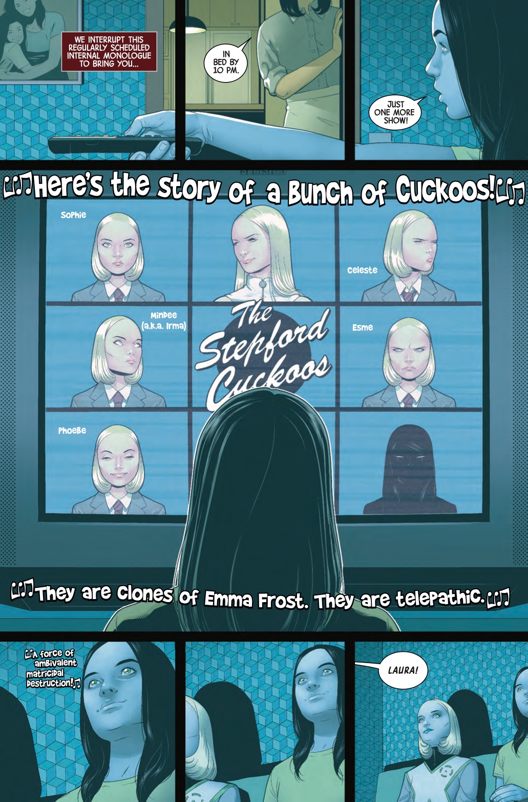 The creative team for X-23, Marvel X-editor Jordan White, and we (for recognizing it) are all showing our age today. White took to Twitter for international holiday X-Men Monday to tease an image from the upcoming X-23 #4, in stores on Wednesday, reimagining the intro to the classic television show The Brady Bunch with the Stepford Cuckoos.