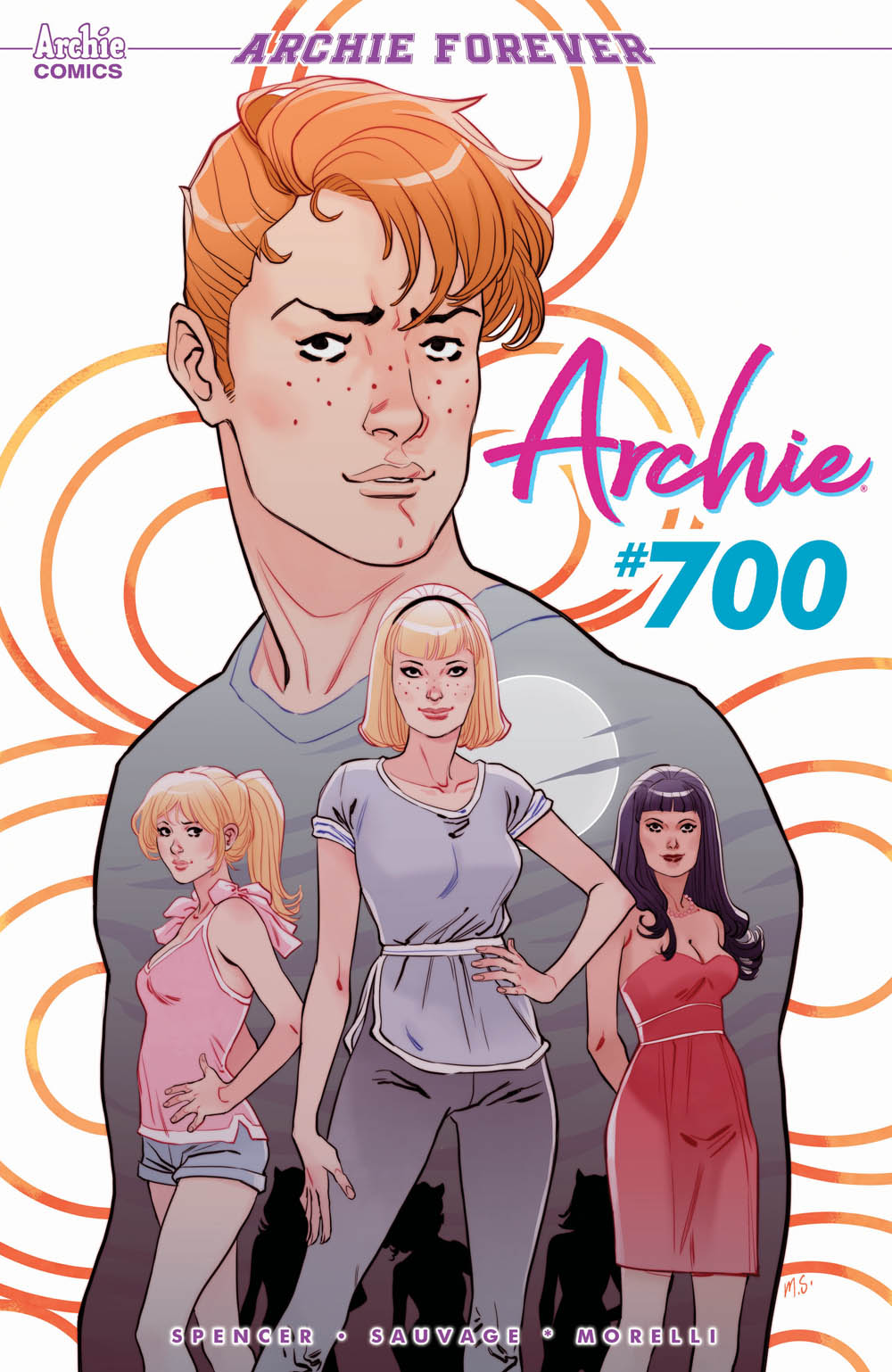 A brand new era of ARCHIE begins in this landmark 700th issue of our flagship series! Join the new creative team of writer Nick Spencer (The Amazing Spider-Man) and artist Marguerite Sauvage (DC's Bombshells) as they take a trip to Riverdale and bring Archie, Betty & Veronica, Jughead, and the rest of the town along for a wild ride complete with new mysteries, new relationships, and much more!