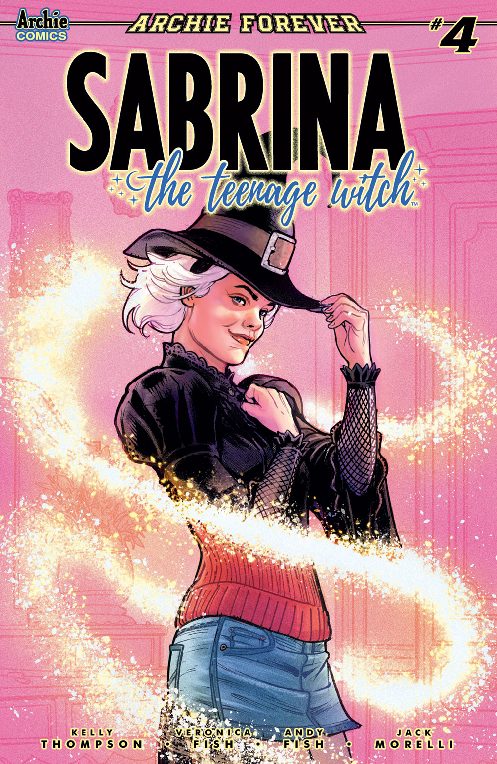 In SABRINA THE TEENAGE WITCH, a magical teen moves to a new town and school where she has to balance friendships, romance, and saving the world from supernatural threats. The five-issue mini-series is written by Kelly Thompson with art by Veronica and Andy Fish.