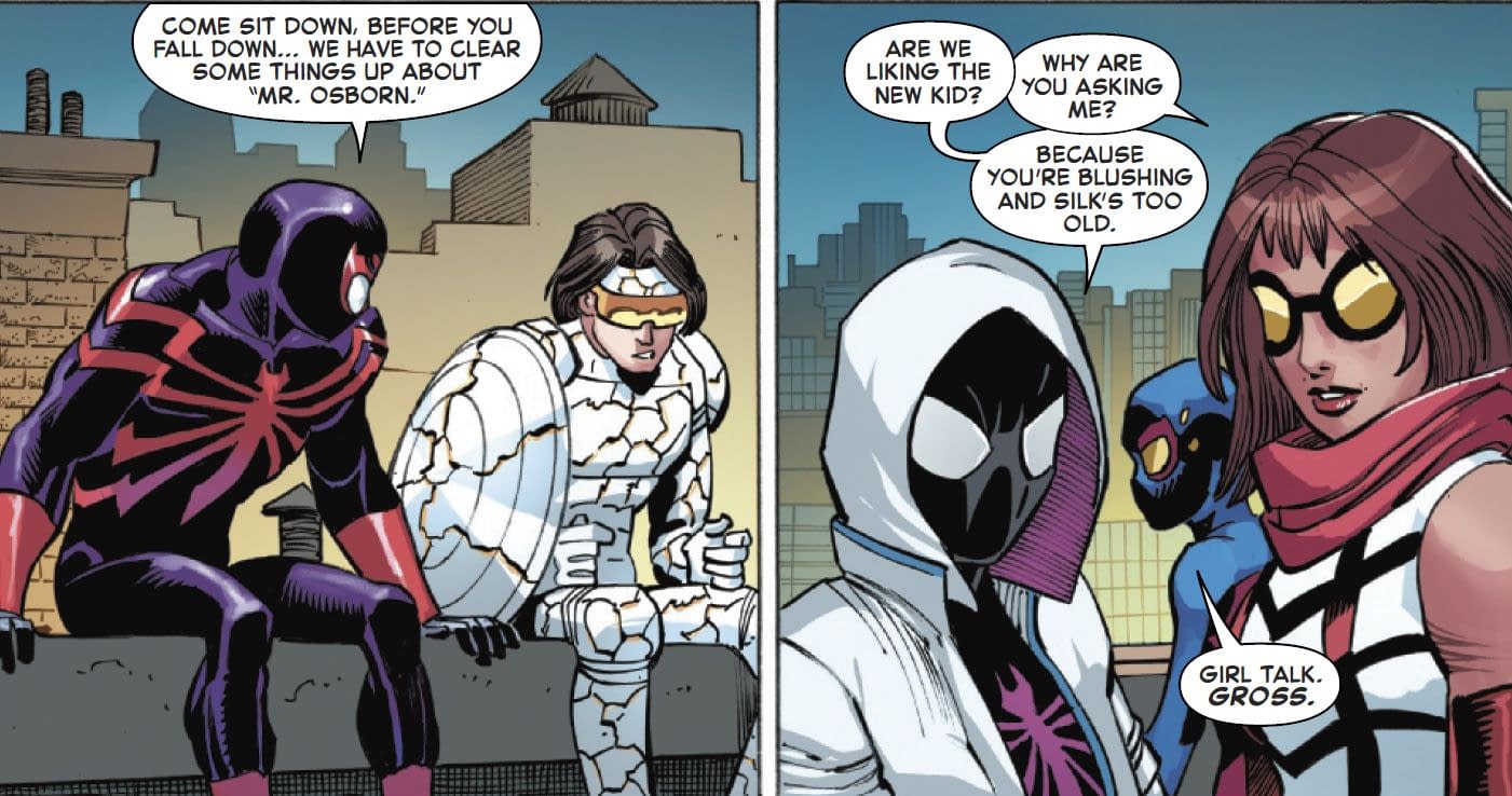 And even as the Spider-folk take on a new member halfway between Spider-Man and Captain America to discuss a certain Norman Osborn…