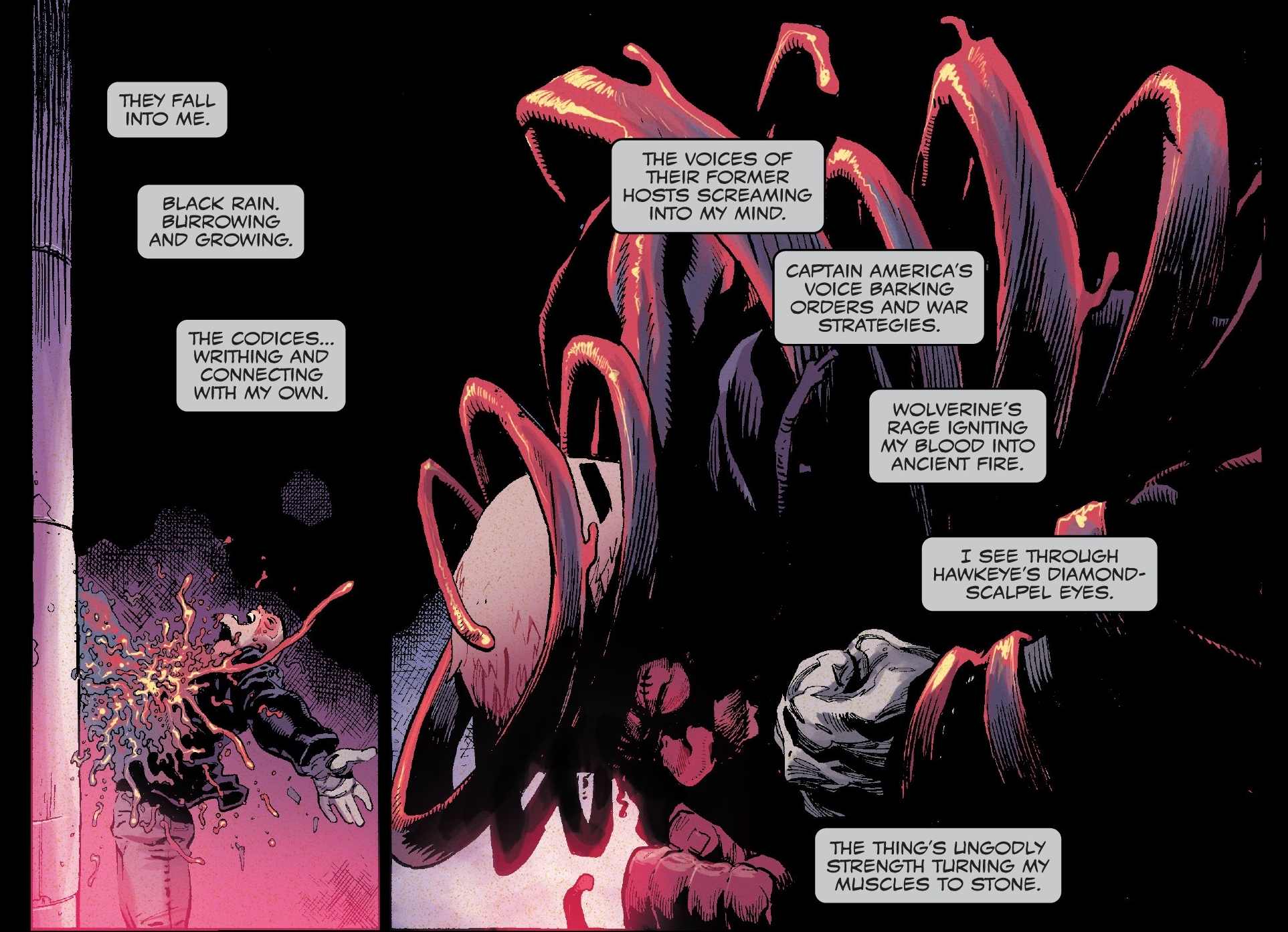 We know that it all works out and the heroes get their codices removed. Still it gives Eddie Brock a chance to do similar, combining codices from all those heroes into one, and gaining their abilities in the process.