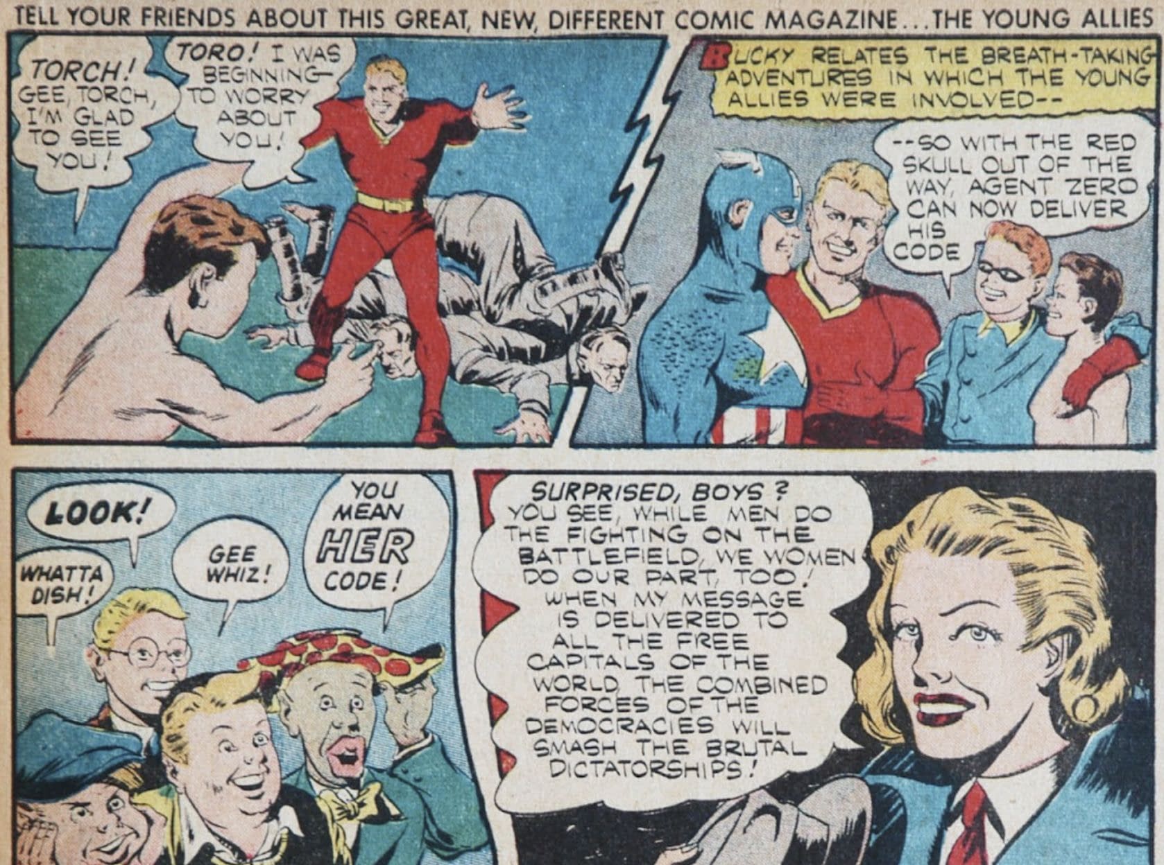 But you know what? There is an Agent Zero from Marvel's World War II comics who first appeared in Young Allies Comics #1 in 1941. A British spy who flees to the United States carrying a vital secret code that the Red Skull wants to obtain. And then revealed as a woman.