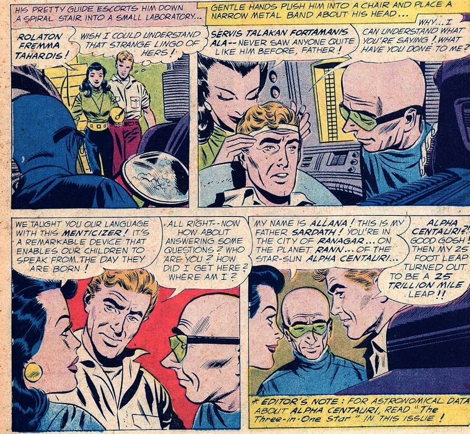 Yes, folks, we have an Absolute Universe debut for a brand new character, albeit in one based on previous characters… and she has the same language issue that classic Adam Strange had. Until Alanna intervened, then as now…