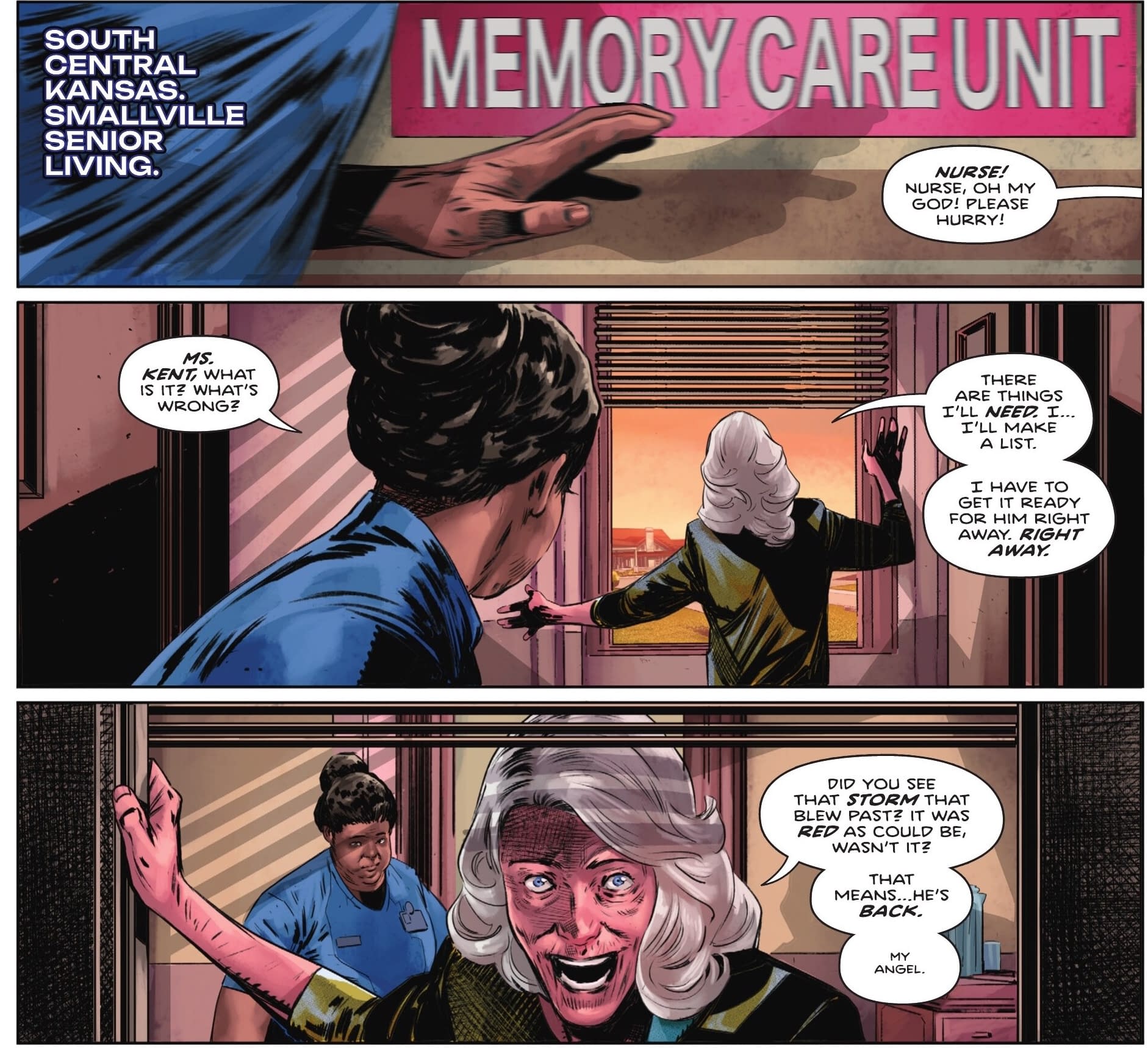 It begins in Absolute Superman #12 in Smallville, Kansas, with Martha Kent in a nursing home. From somewhere so small…